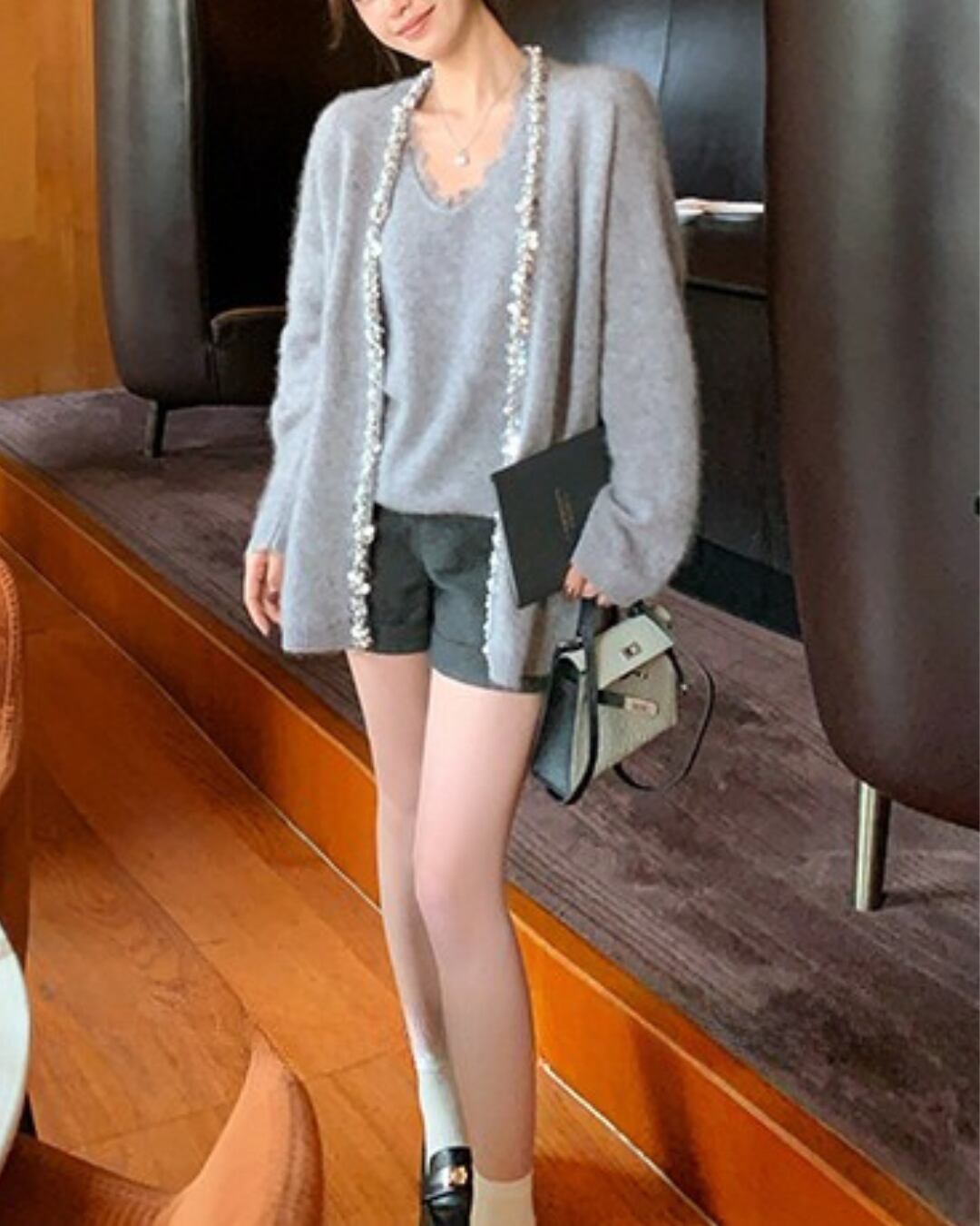 ビジューラインニットカーディガンセット l5199