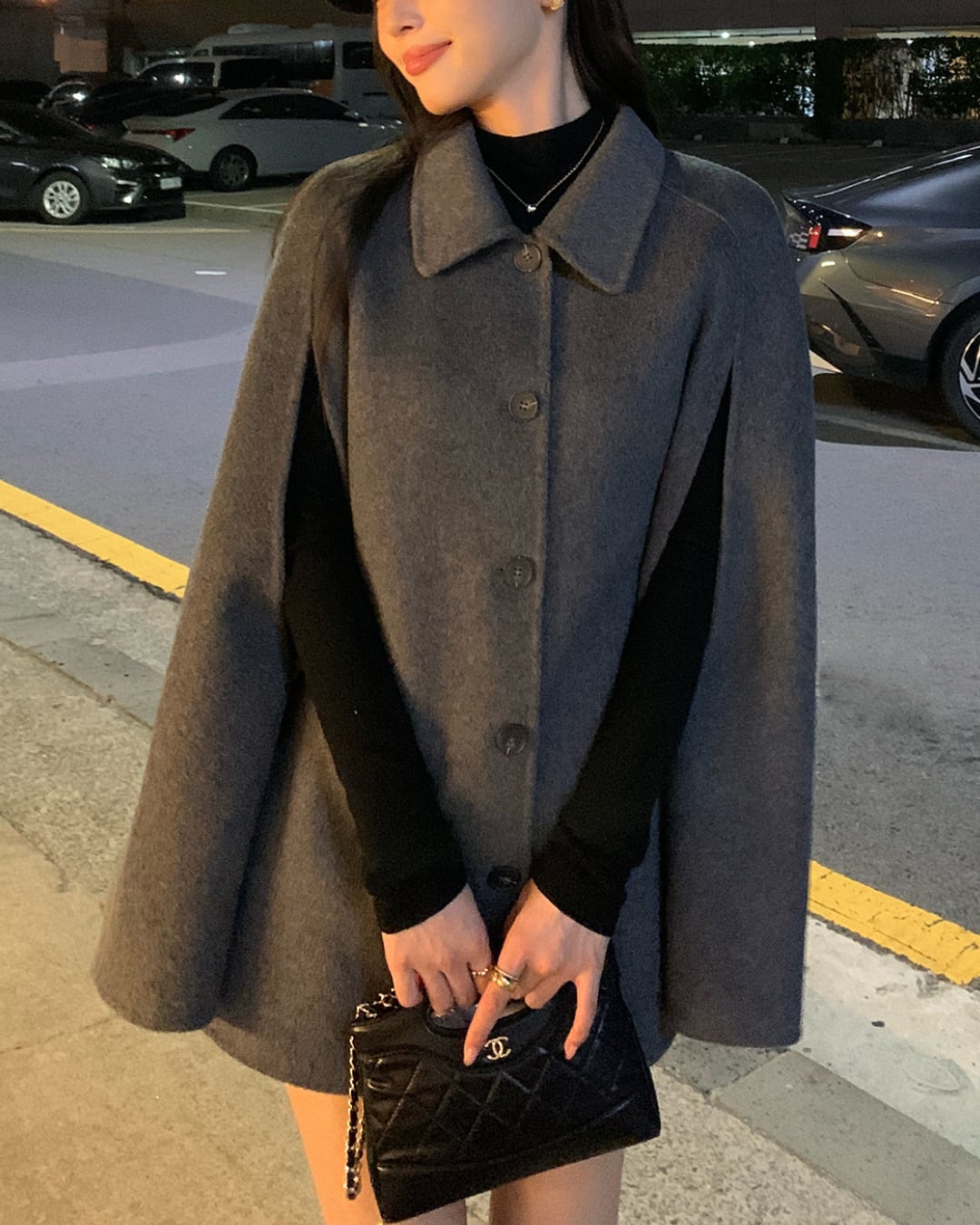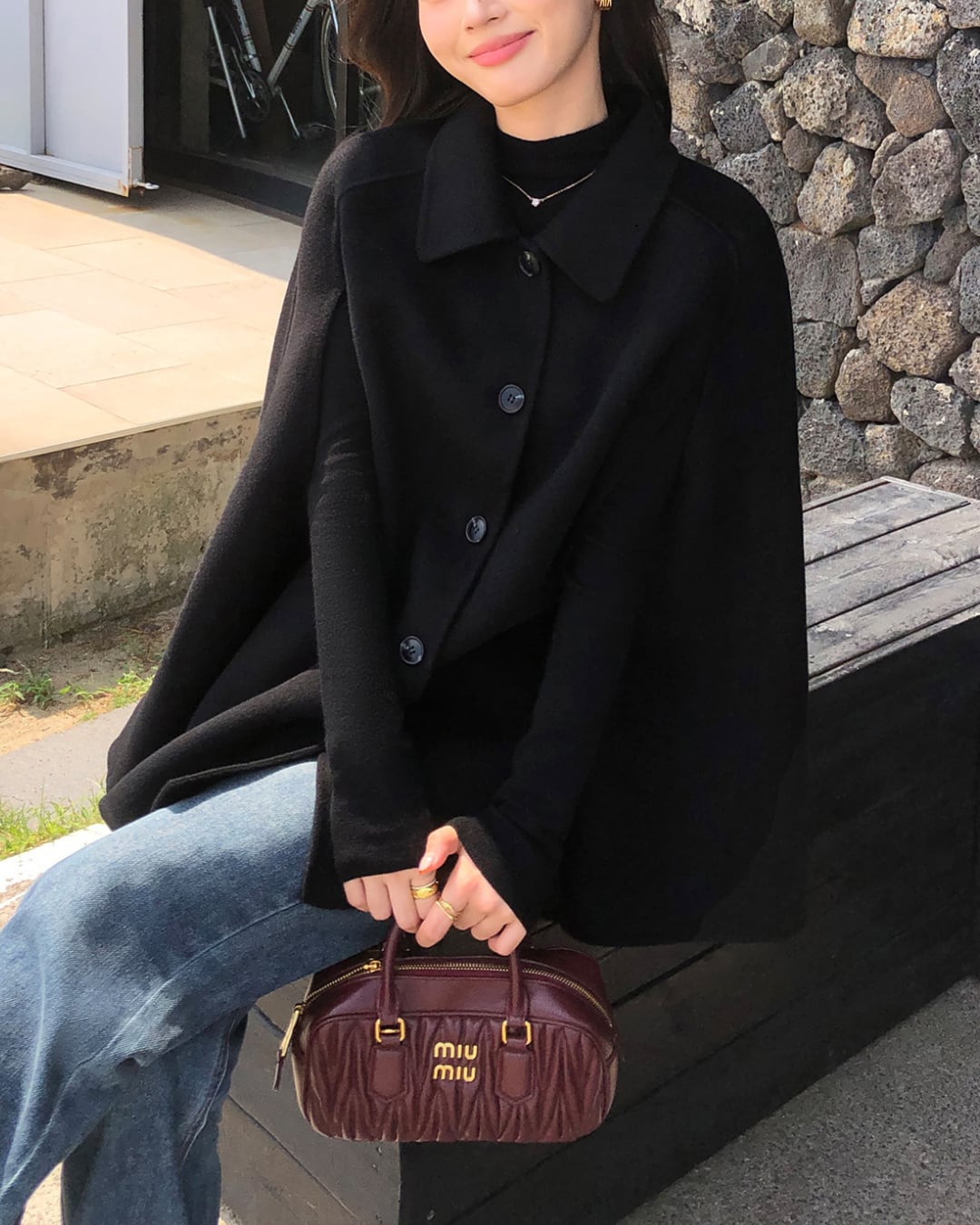 #100%ウール #ケープコート #Aラインシルエット #高見えアウター #大人ガーリー #秋冬コーデ #フェミニンカジュアル
