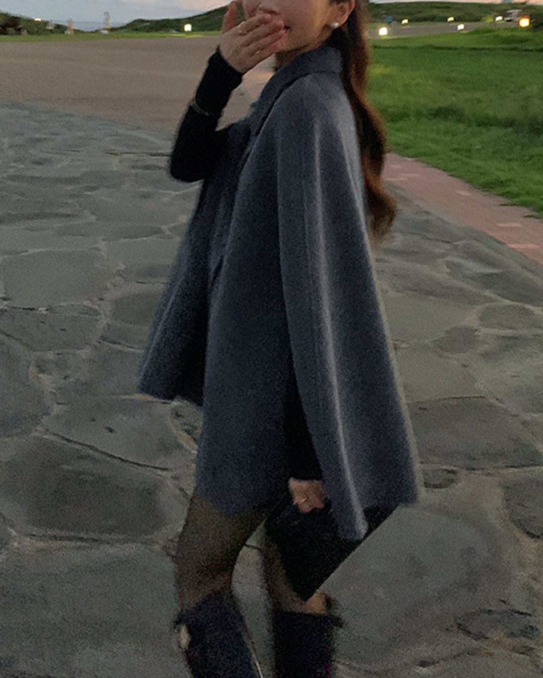 高品質な100%ウール素材を贅沢に使用した大人ガーリースタイルのケープコート。柔らかくしなやかな肌触りと、しっかりとした厚みで寒い季節にも暖かく包み込んでくれます。立体感のあるAラインシルエットが上品な印象を与え、どこから見ても美しいフォルム。両サイドにスリットを設けた二重袖口デザインで、手を出すスタイルも自然にきまります。前立てはシンプルなボタン開閉で着脱も楽ちん。デニムと合わせてカジュアルにも、ワンピースに羽織ってフェミニンにも着回せる一枚です。