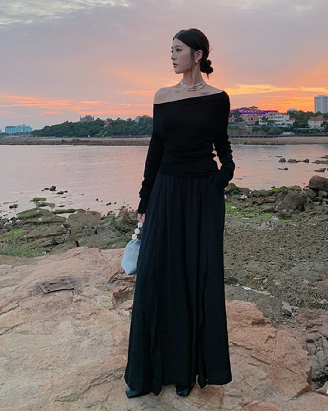 デコルテが綺麗に見える、上品なオフショルリブニット。一枚で「斜めショルダー」や「ワンショルダー」としても着こなせる2WAY仕様で、フェミニンな抜け感を演出。体に優しく沿うリブ素材は伸縮性があり、着心地も◎。ほどよくフィットするスリムシルエットと、前後アシンメトリーな裾ラインが洗練された印象を与えてくれます。しっかりと長さのある袖は、手元を華奢に見せてくれるデザイン。
