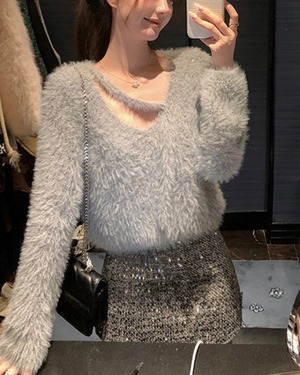 ラメシャギーVネックニット l5234