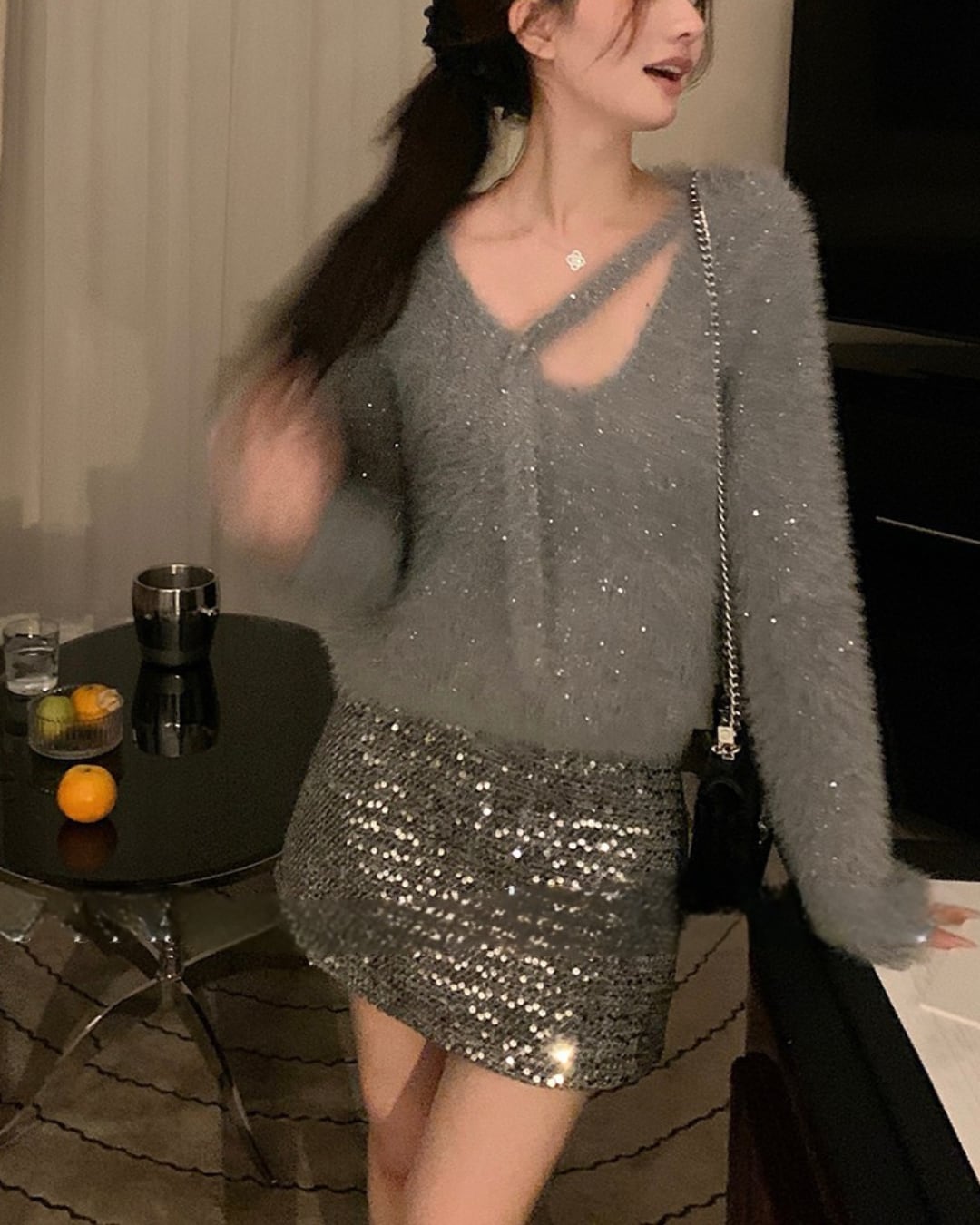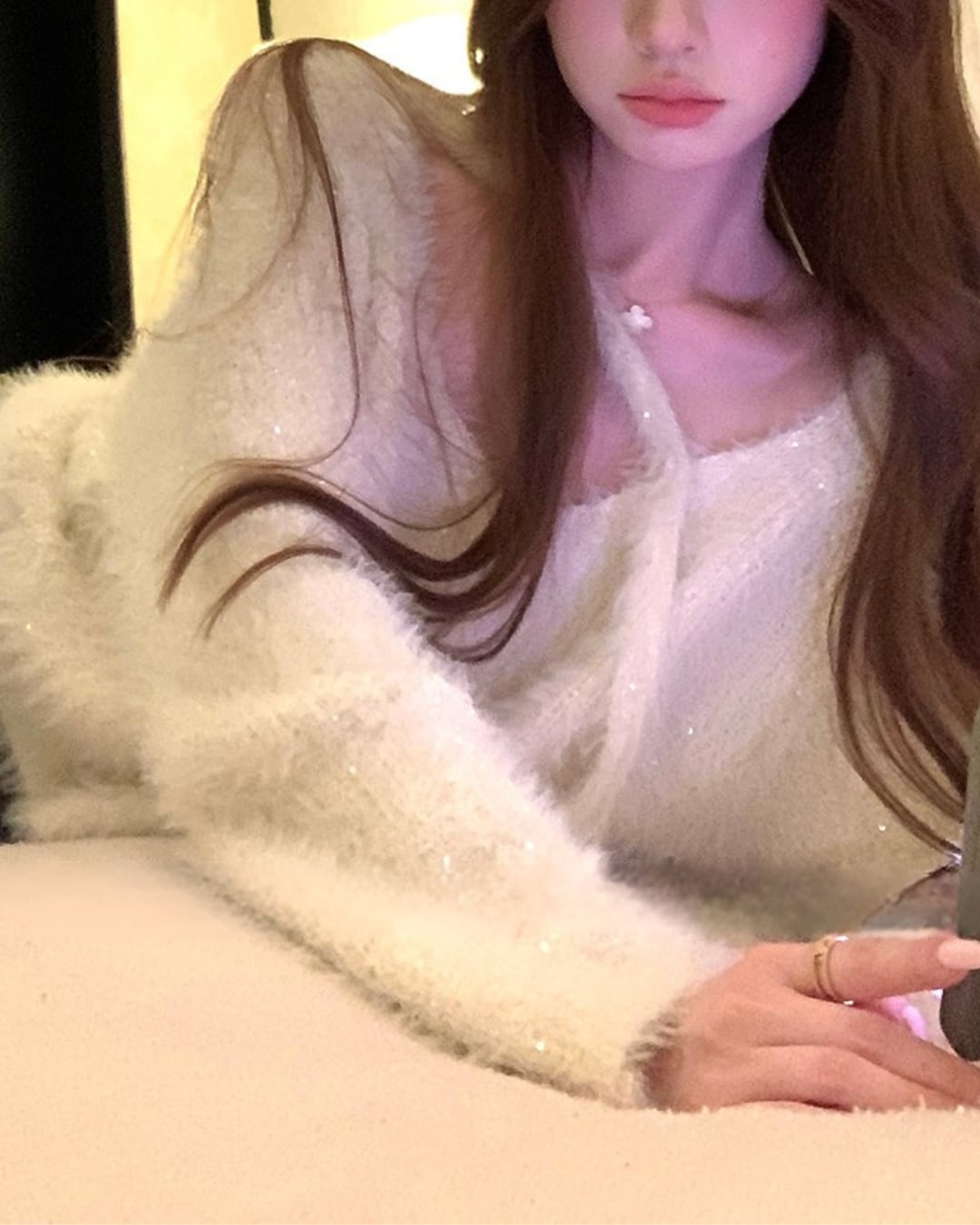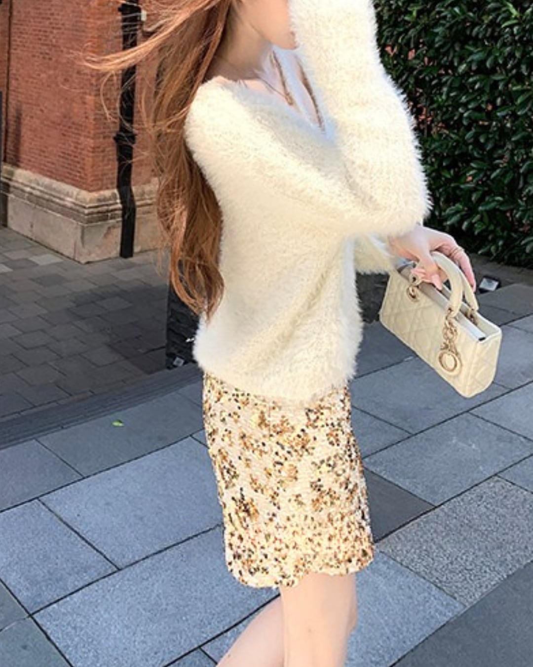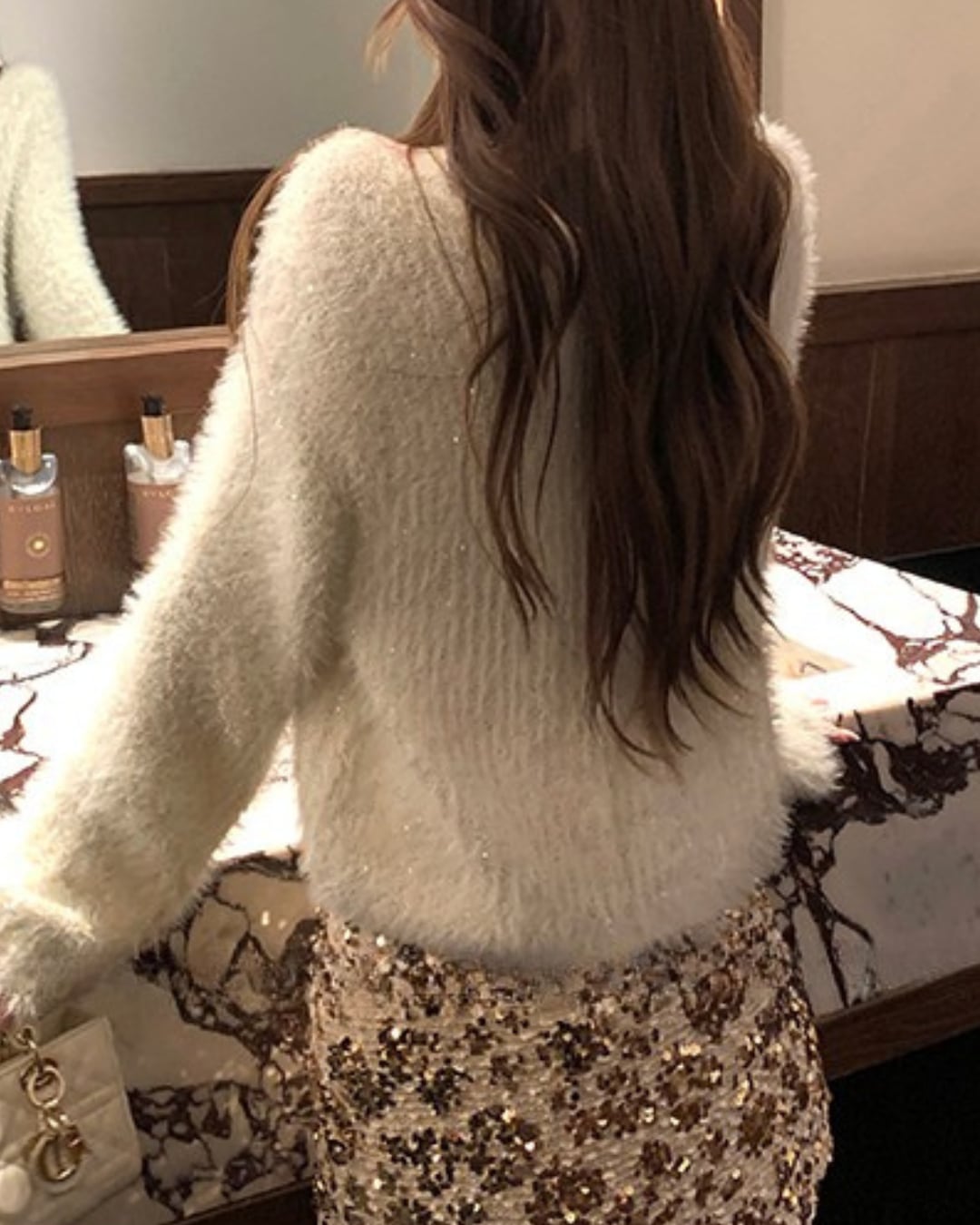 #シャギーニット #ラメトップス #Vネックニット #フェミニンコーデ #キラキラコーデ #大人ガーリー #冬コーデ #着映えトップス