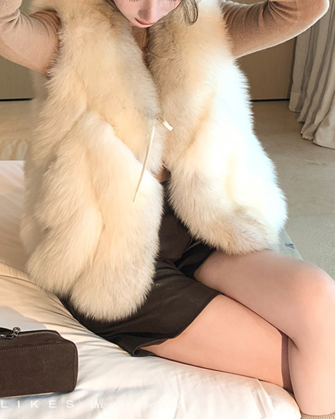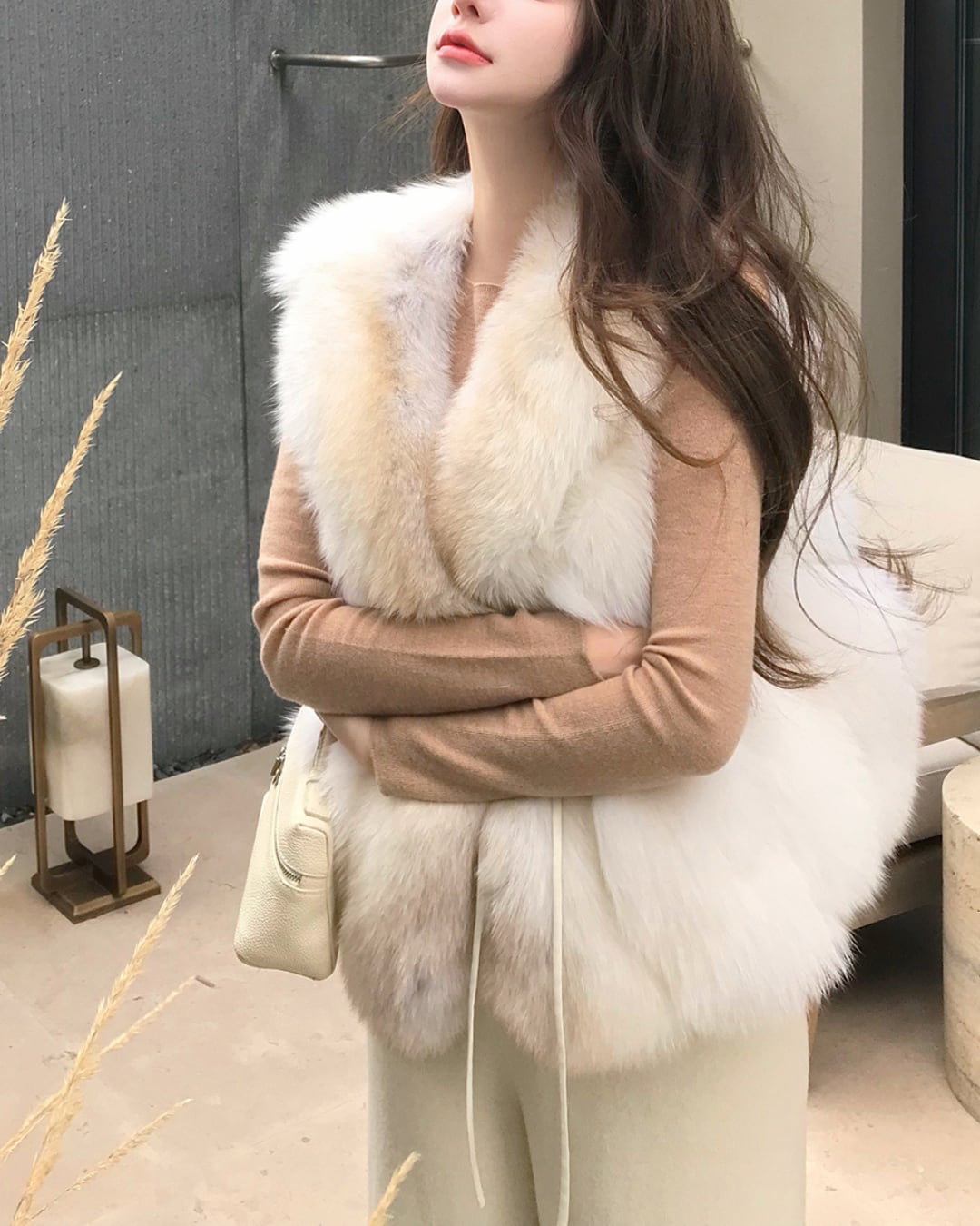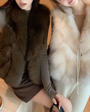 贅沢なボリューム感が魅力の、フィンランド産フォックスファーを使用したエレガントなファーベスト。ふわふわと柔らかく高級感のある毛並みが、着こなしに華やかさをプラスします。ウエストには華奢なリボン付きで、前を閉じても開けても女性らしいシルエットに。ワンピースやニット、パンツスタイルなど幅広いコーデに合わせやすく、秋冬の主役アイテムとしておすすめの一枚です。