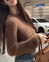 #フェイクファー #カーディガン #ふわもこ #ラウンドネック #ショート丈ニット #大人ガーリー #秋冬コーデ #レイヤード