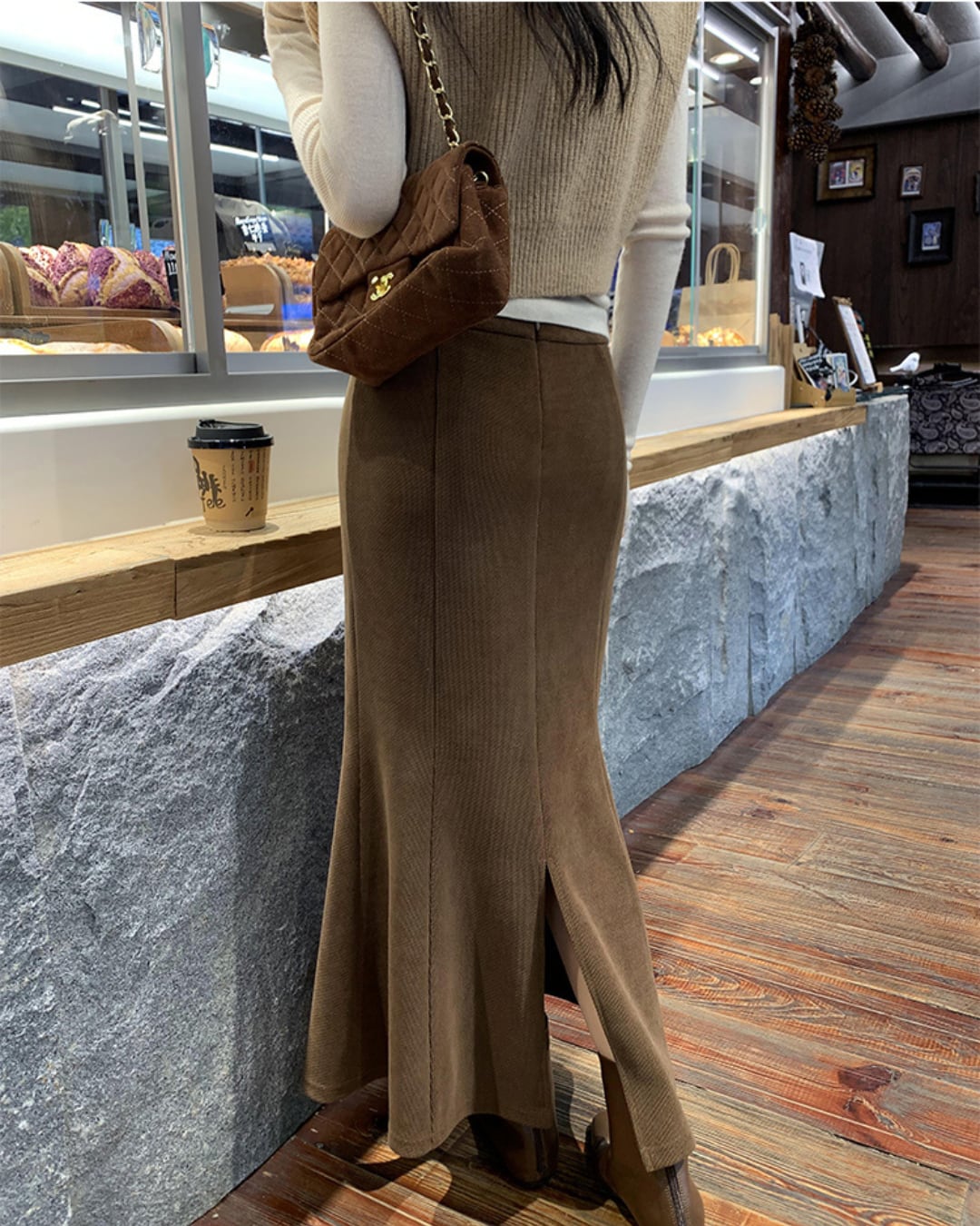 #マーメイドスカート #ハイウエスト #ニットスカート #ロング丈 #秋冬コーデ #大人ガーリー #スタイルアップ