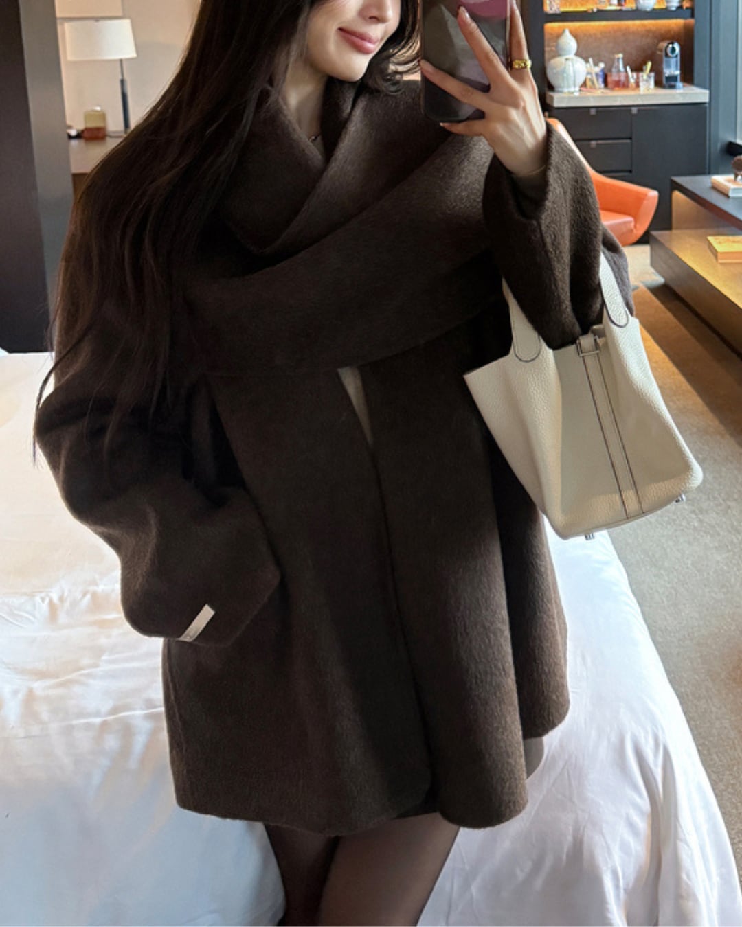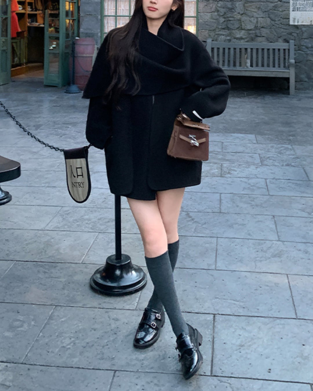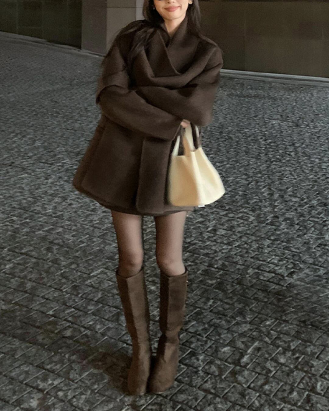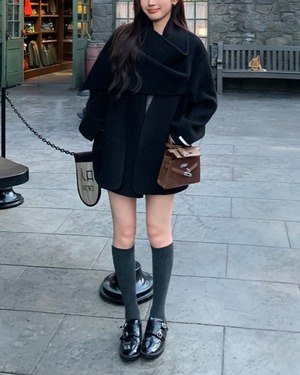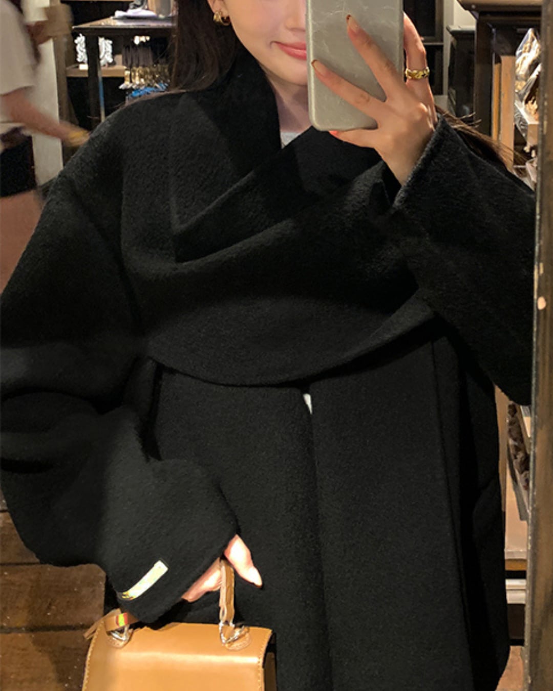 #ビッグカラー #ウールコート #ショートコート #大人ガーリー #秋冬アウター #リボン付き #ゆったりシルエット