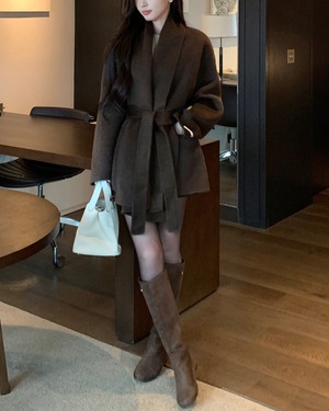 たっぷりとしたビッグカラーが顔まわりを華やかに魅せてくれるウールショートコート。ゆったりとしたシルエットに、ウエストリボンをプラスして女性らしいメリハリを演出。ドロップショルダーで抜け感があり、大人ガーリーな印象に。柔らかく高級感のあるダブルフェイス生地で、秋冬のお出かけにぴったりな一枚です。
