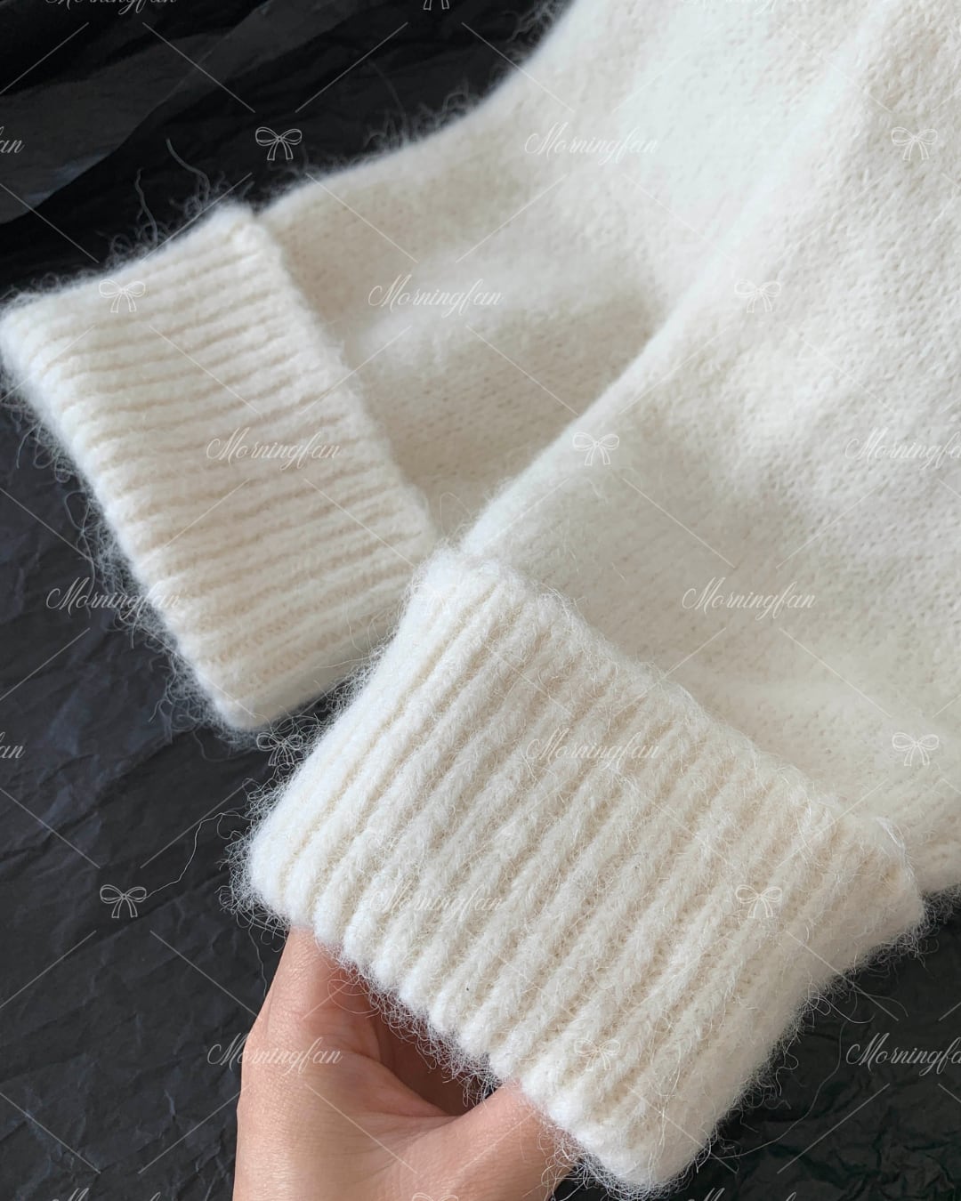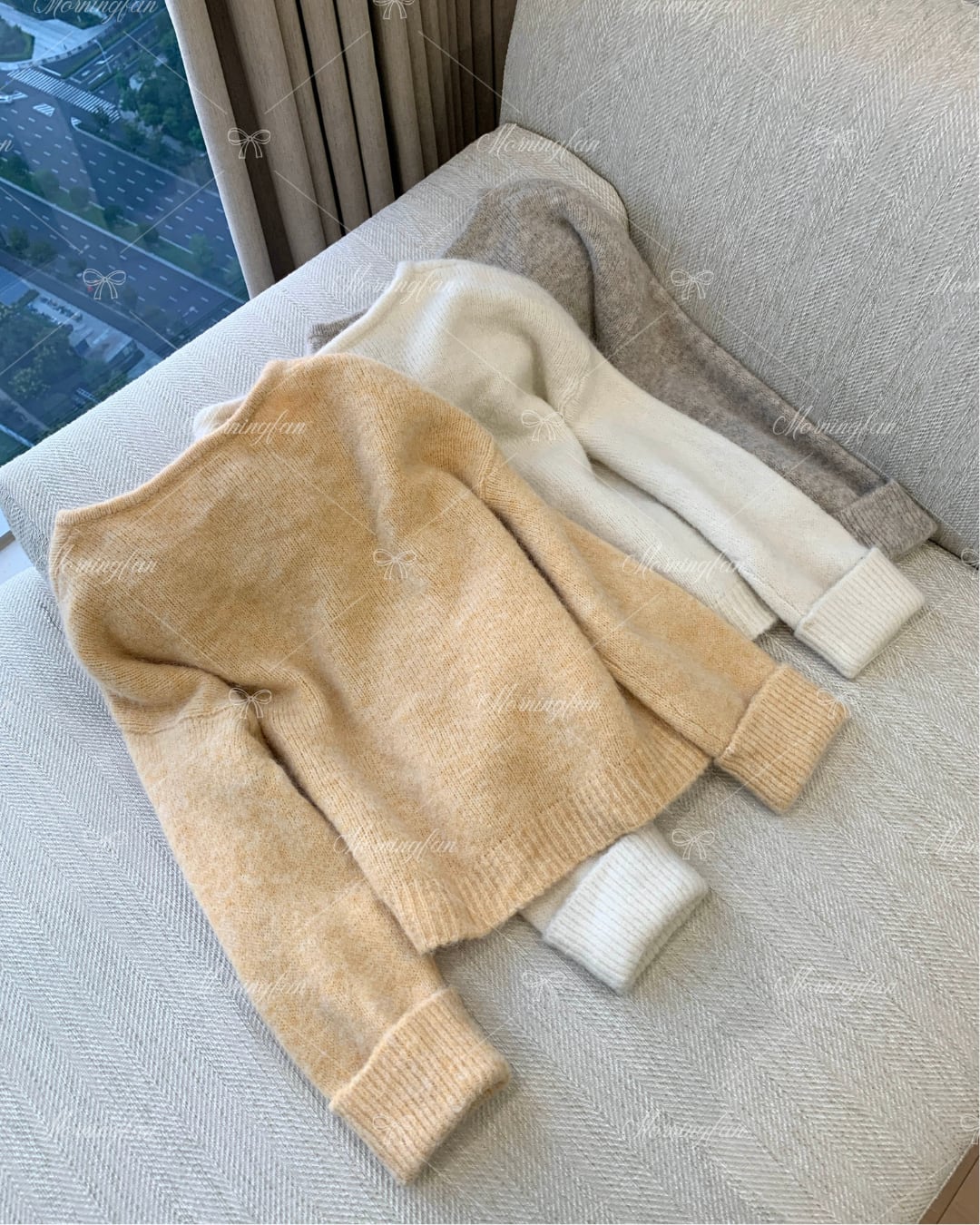 柔らかくふわっとした質感のモヘアニットセーター。Vネックデザインとゆったりとしたシルエットで、リラックス感を演出しながらも上品な印象を与えます。寒い季節にも暖かく、着心地も抜群。袖口や裾のリブがアクセントとなり、カジュアルながらも少しのエレガンスを感じさせる一着です。デニムやスカート、どんなアイテムとも相性抜群で、日常使いにも特別な日のコーディネートにも最適です。