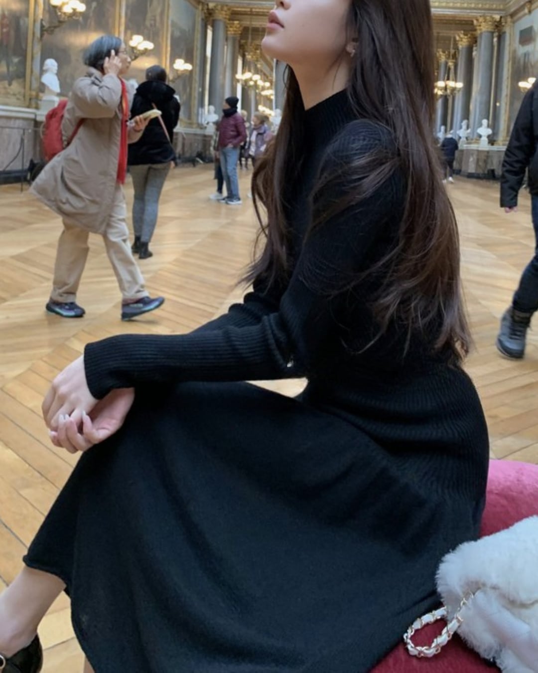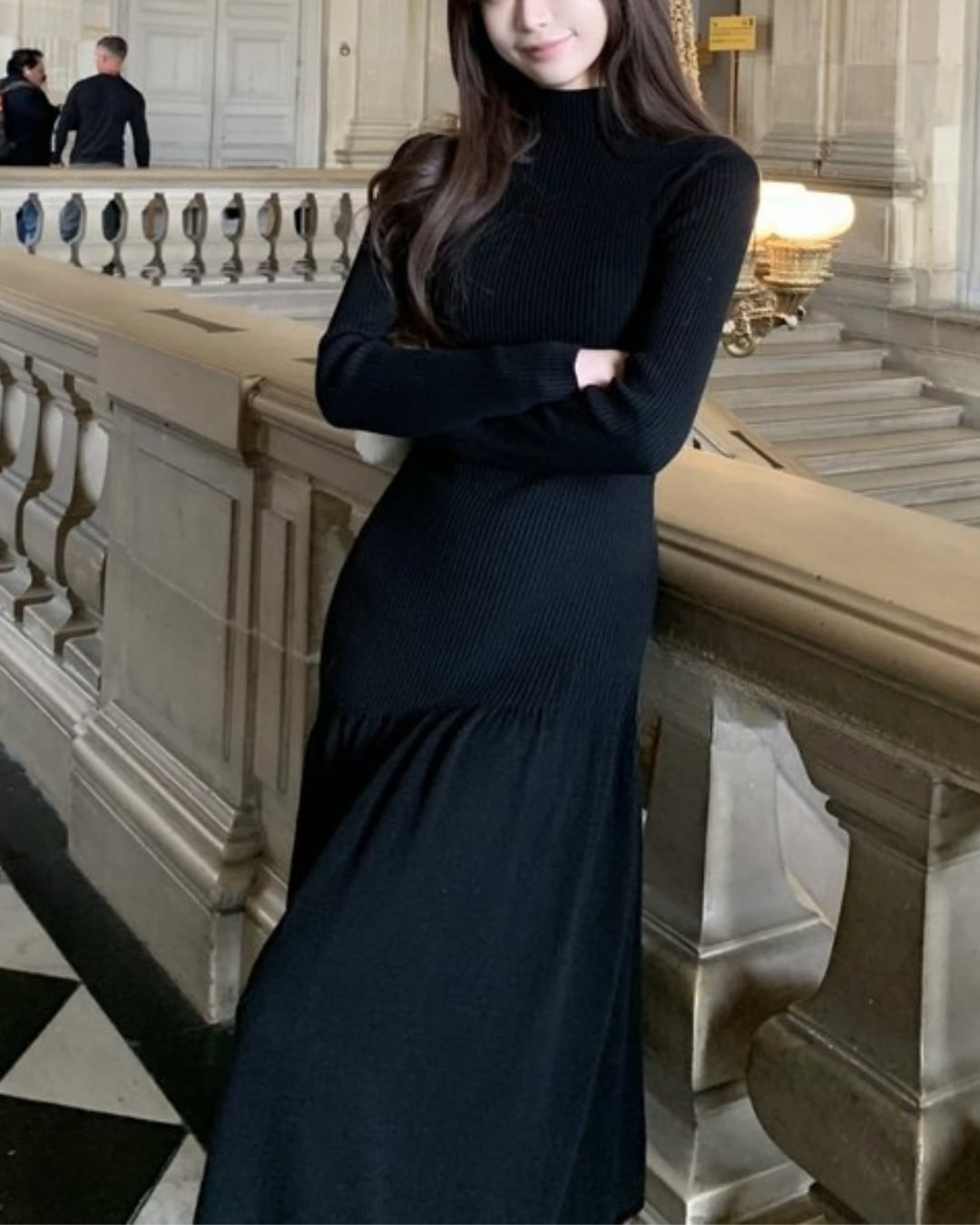#リブ編みドレス #フレアドレス #シンプルファッション #エレガントコーデ #快適な着心地 #ブラックドレス #ホワイトドレス #秋冬ファッション #大人カジュアル