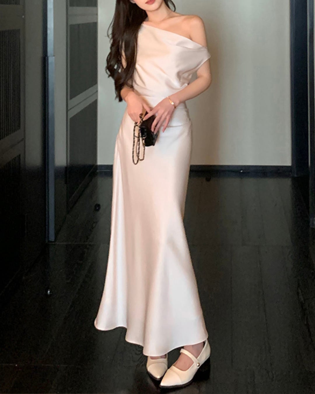 #オフショルダードレス #サテンドレス #ロングドレス #エレガントドレス #特別な日のドレス #ウェディングドレス