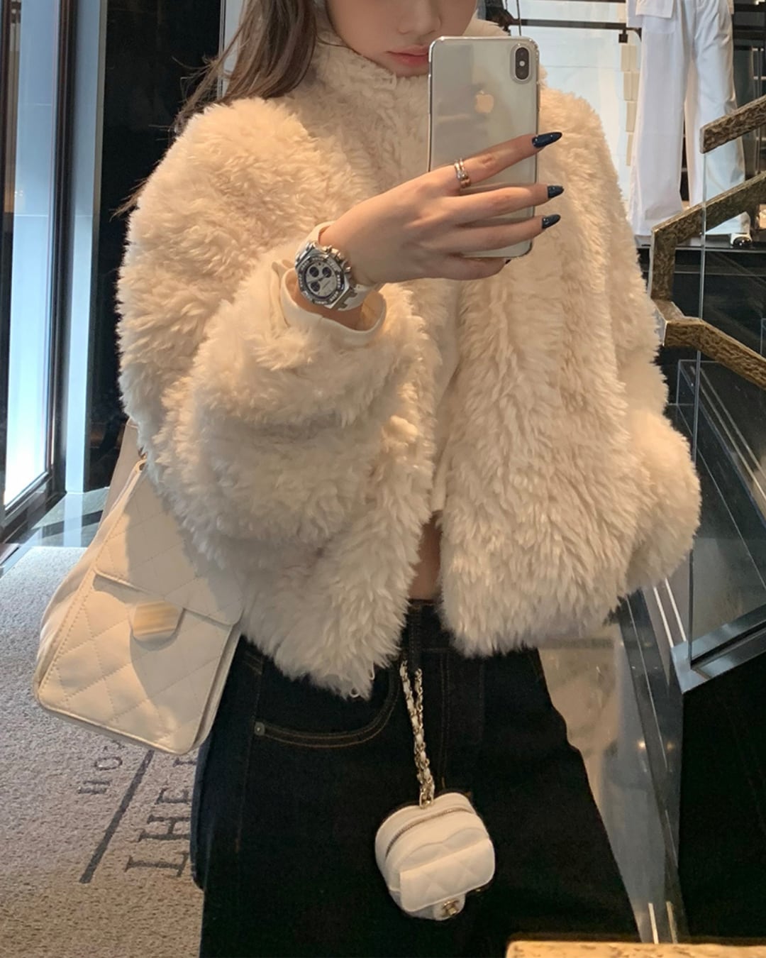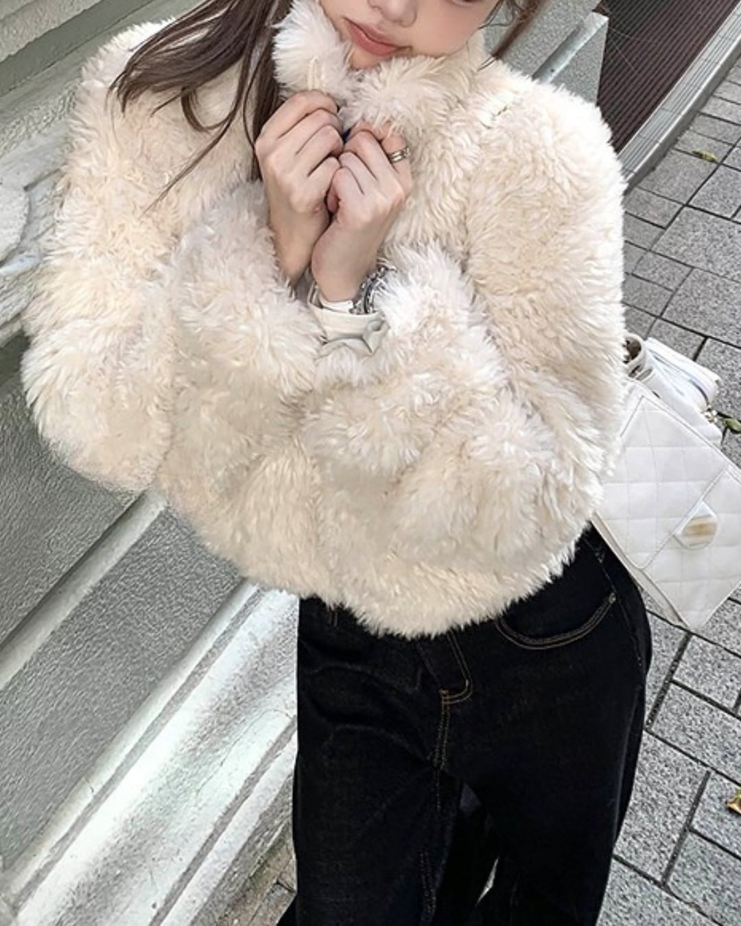 #エコファージャケット #ショートアウター #冬コーデ #フェミニンコーデ #高見えアウター #ふわもこ