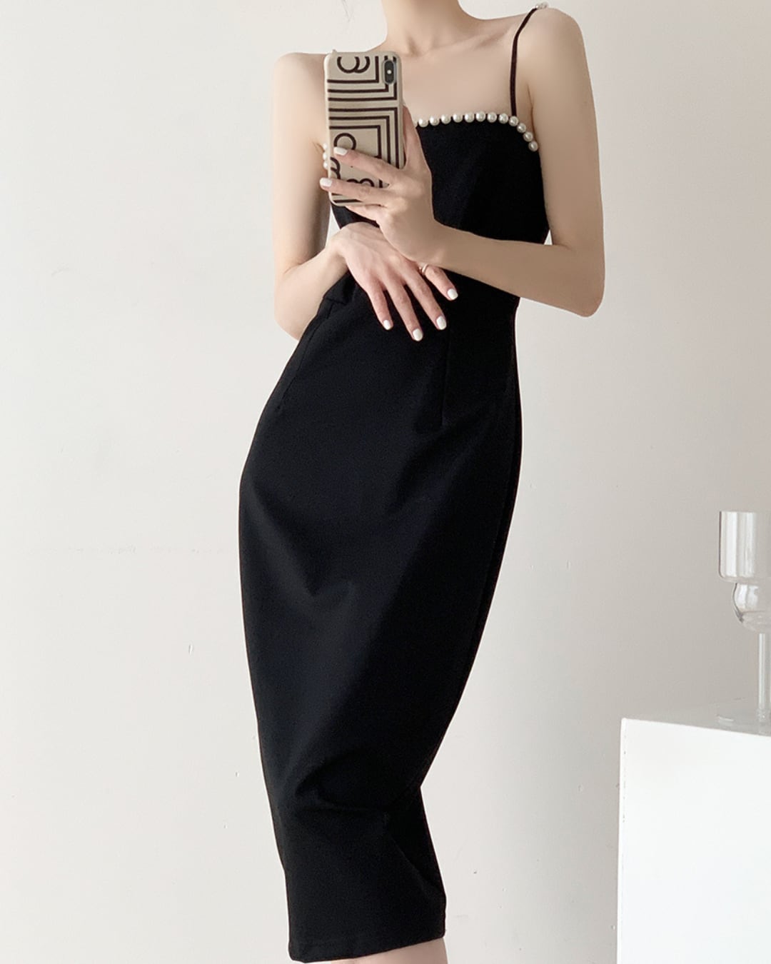 シンプルでありながら洗練されたデザインが魅力のパールディテールスリムフィットドレス。胸元にあしらわれたパールが華やかさをプラスし、シンプルな中にもエレガントな印象を与えます。スリムフィットで体のラインを美しく引き立て、ミディ丈のスカートが女性らしいシルエットを作り出します。デートやパーティー、ディナーなど、特別な日にぴったりな一着です。バックはシンプルなデザインで、どんなアクセサリーとも相性良く合わせられます。