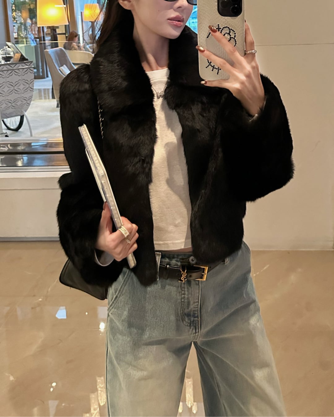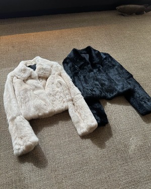ふんわりとした毛並みが贅沢な100%ラビットファーを使用したショートコート。ボリュームのある袖と丸みのあるシルエットで、着るだけで大人可愛い印象に。コンパクトな丈感はスタイルアップ効果もあり、スカートにもワイドパンツにもバランスよく合わせられる一枚です。カラーはシックなブラックと柔らかい印象のアイボリーの2色展開。