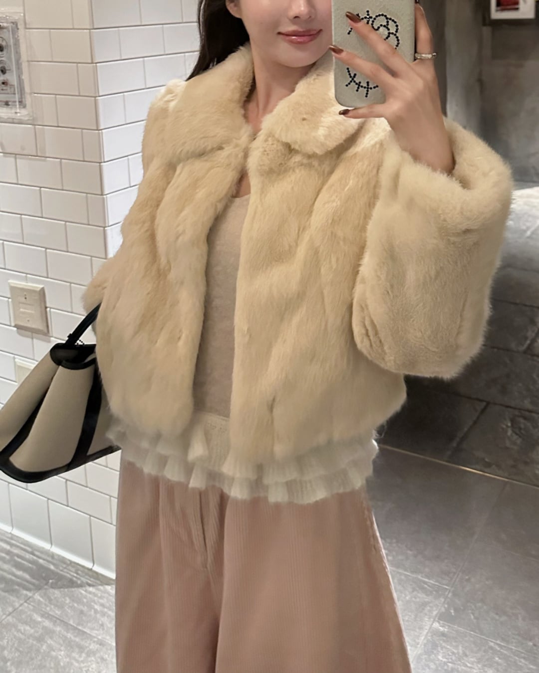 #ラビットファー #ショートコート #フェミニンアウター #冬コーデ #ふわもこアウター #大人ガーリー