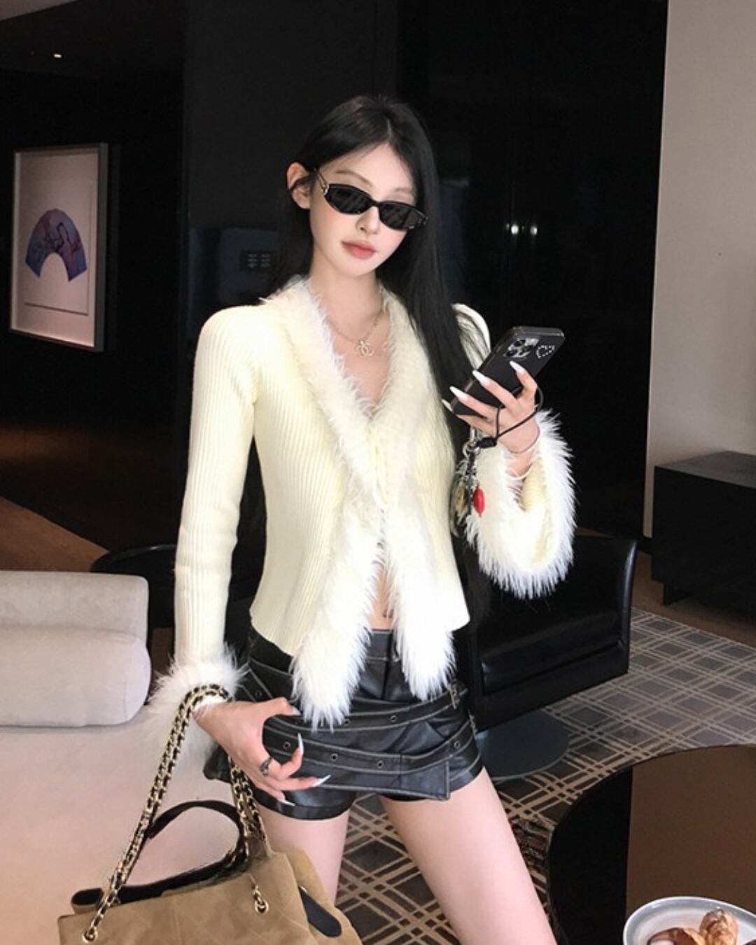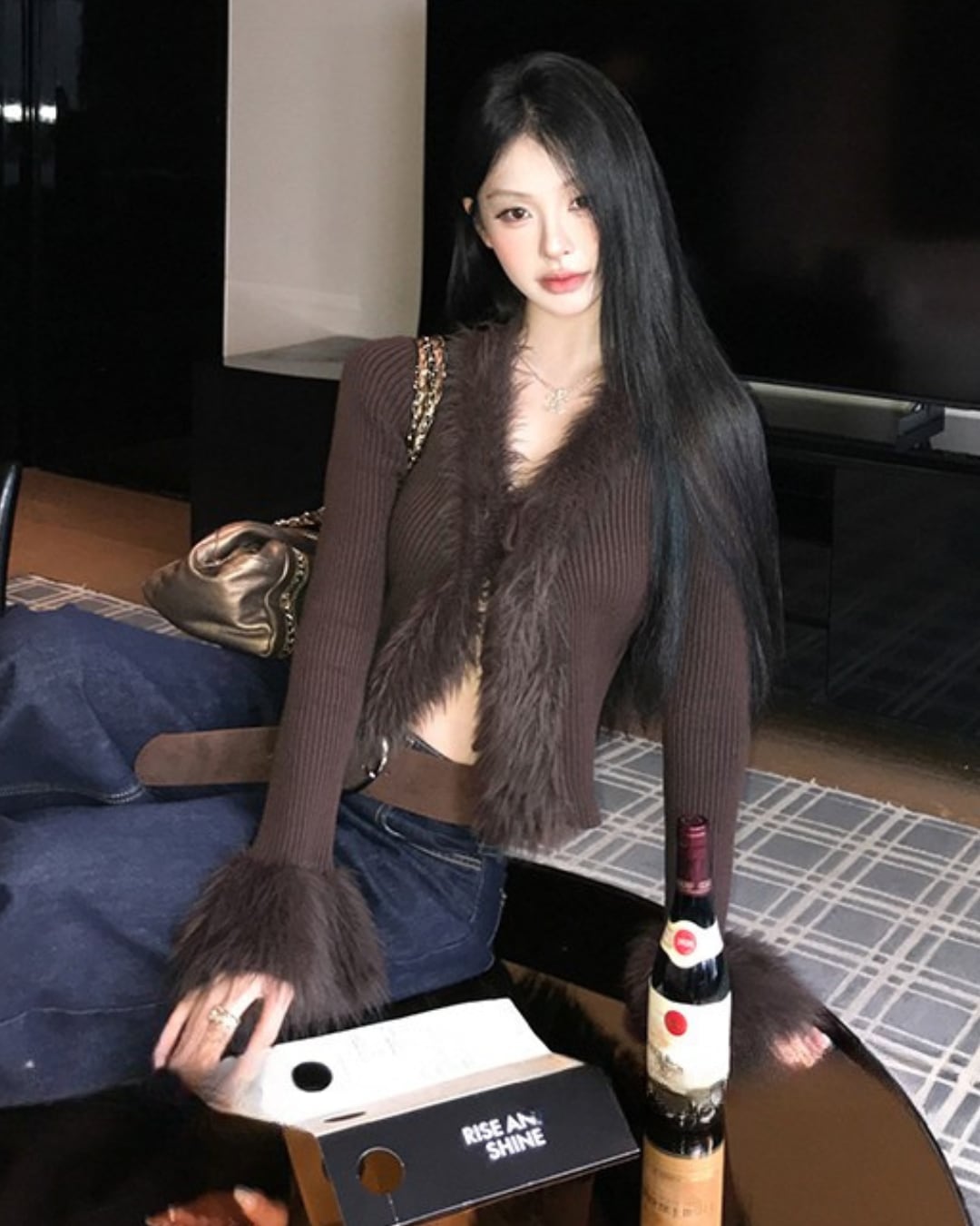 ふわふわのフェザーディテールが襟元と袖にあしらわれた、大人ガーリーな印象のリブニットカーディガン。身体のラインにフィットするタイトめなシルエットで、スタイルアップ効果も抜群。パンツにもスカートにも合わせやすく、肌寒い季節の主役トップスとして活躍します。