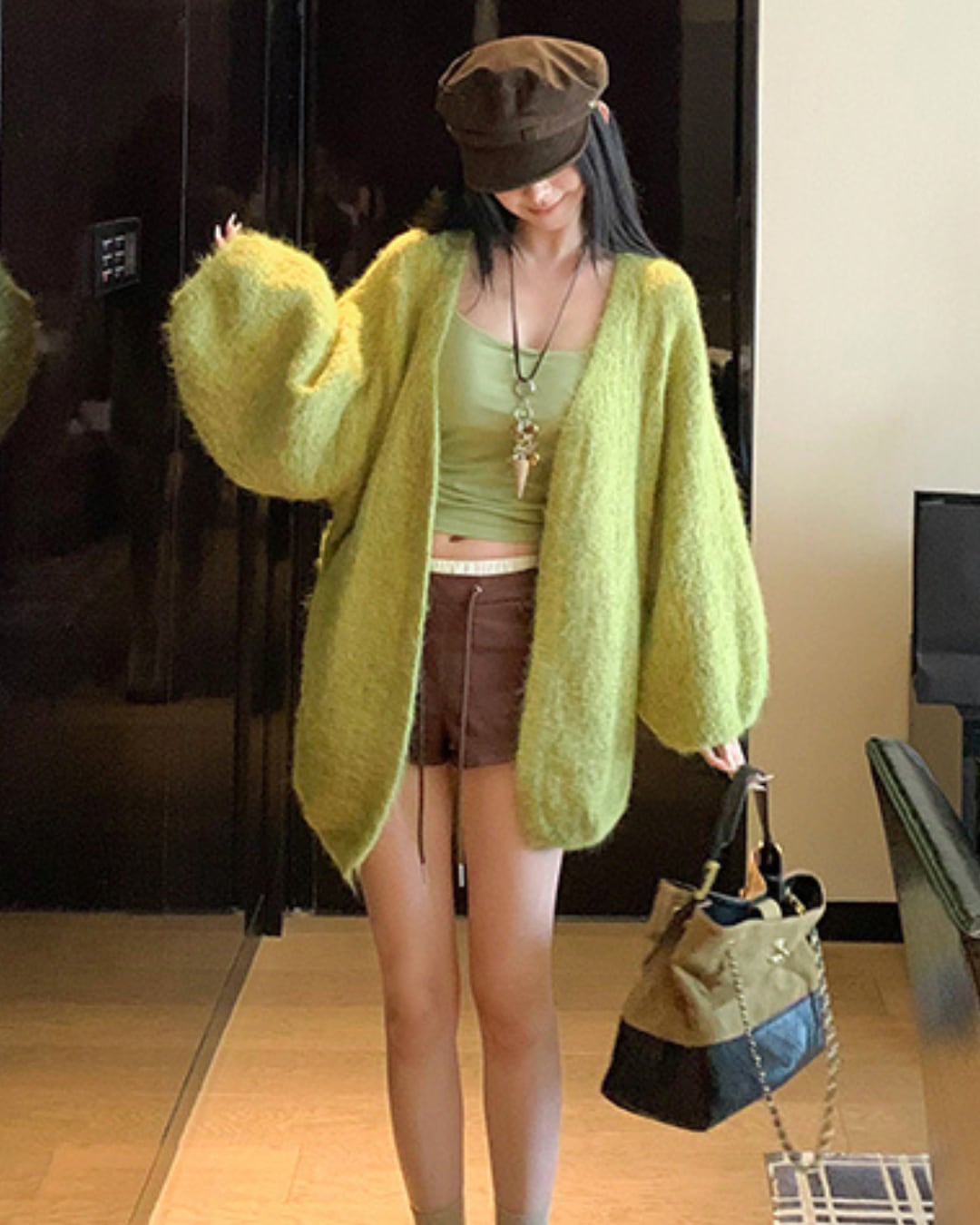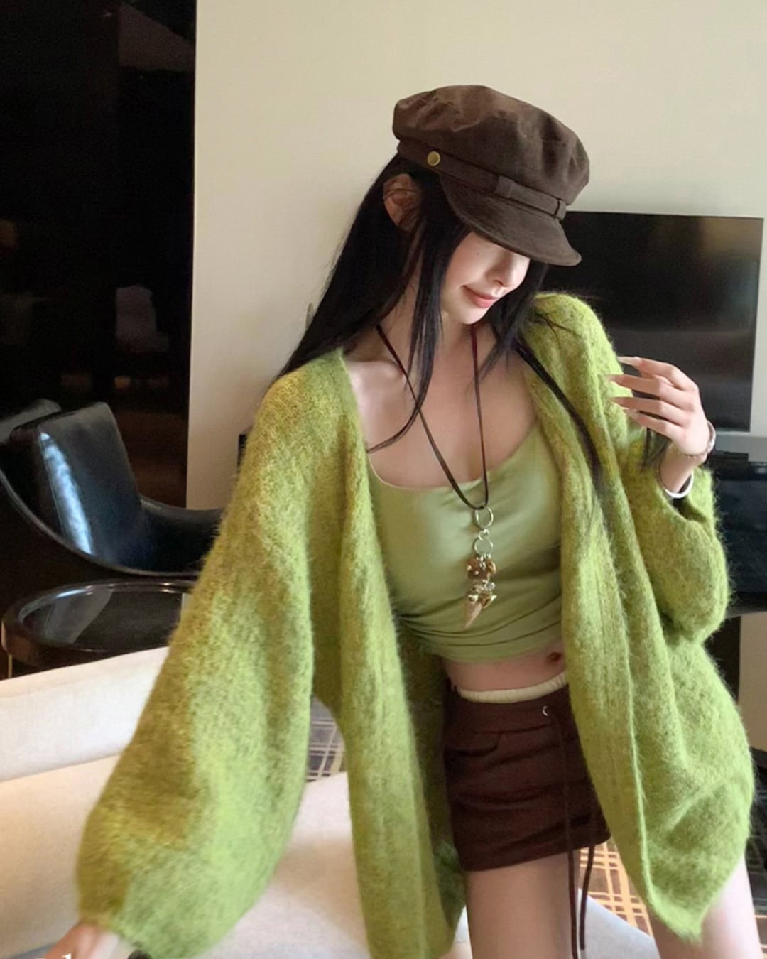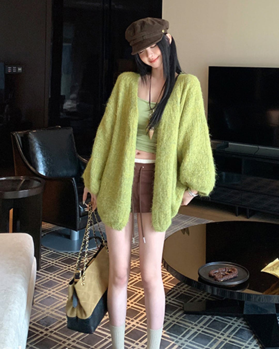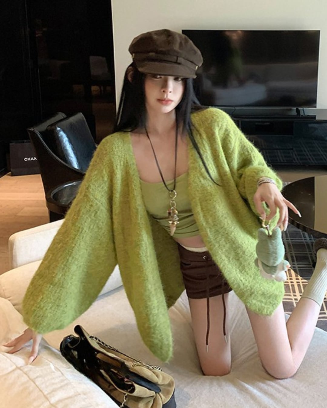 ふんわりとした起毛感が魅力のふわもこカーディガン。リラックス感のあるドロップショルダーとゆったりルーズなシルエットで、抜け感たっぷりの大人かわいいスタイルに。軽やかな素材感で季節の変わり目の羽織りにぴったり。甘めカラーのピンクと、爽やかなグリーンの2色展開。