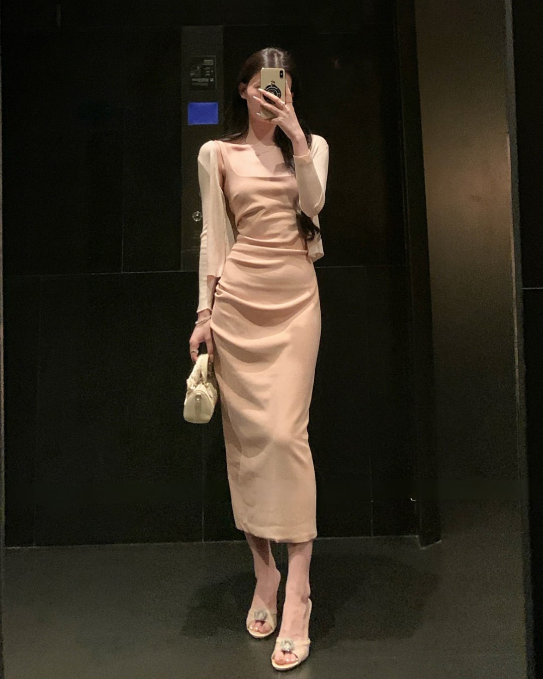 #タイトワンピース #スクエアネック #美シルエット #韓国ファッション #大人ガーリー #きれいめコーデ #推し活ドレス #量産型 #デート服 #お呼ばれコーデ