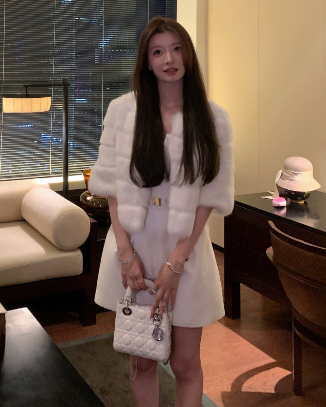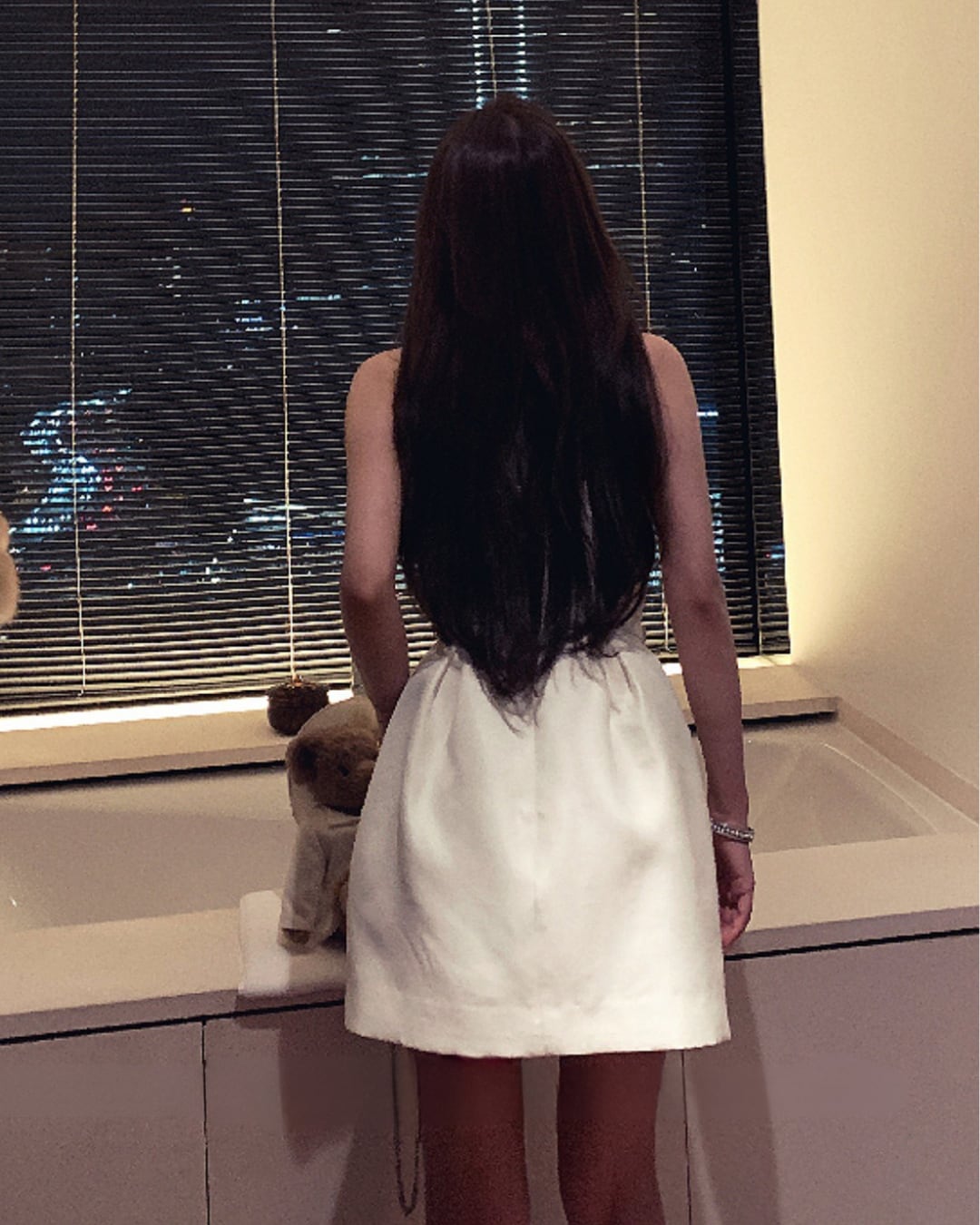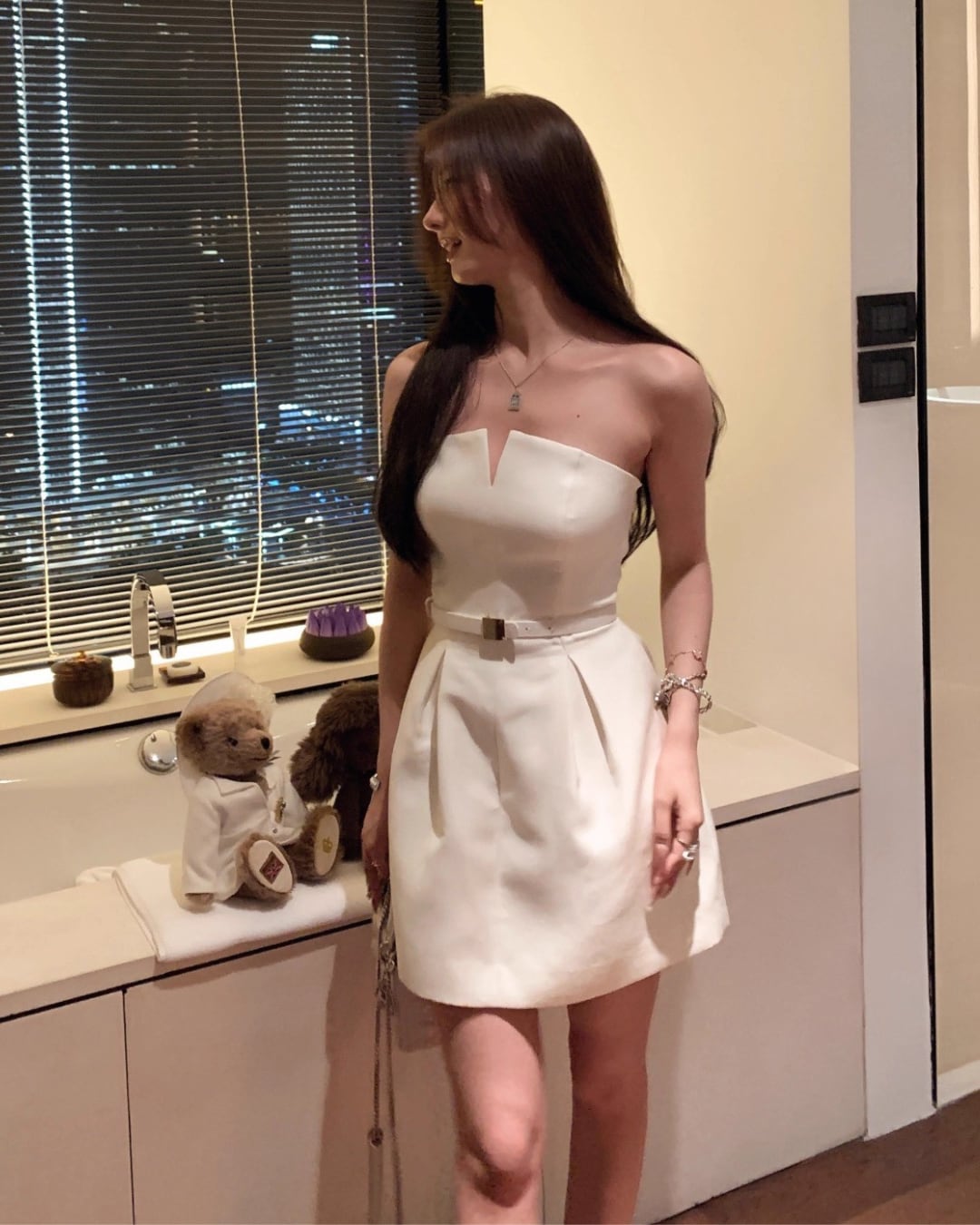 #ビスチェ風 #ミニワンピース #ベルト付きワンピ #大人ガーリー #上品ワンピ #パーティードレス #アイボリーコーデ