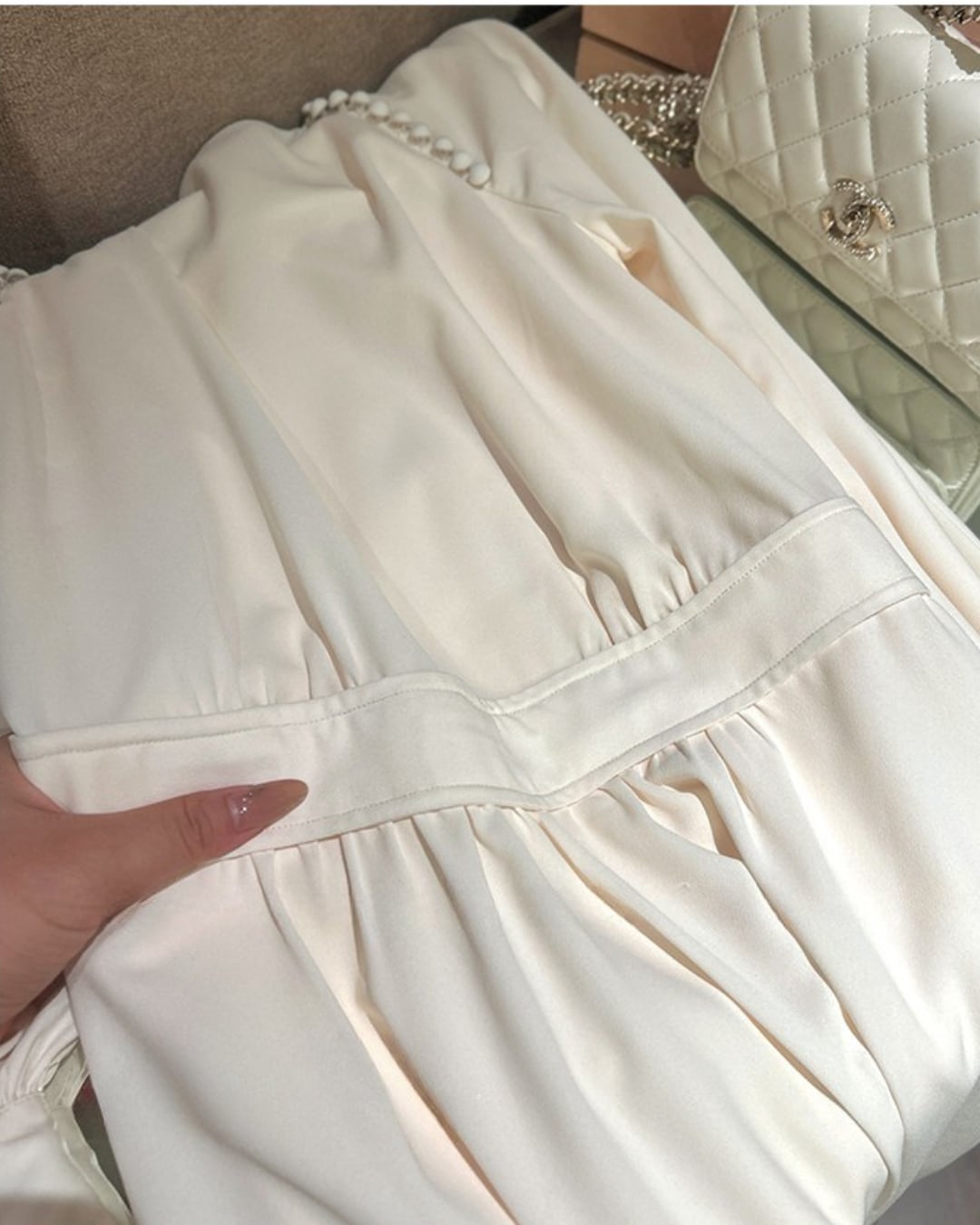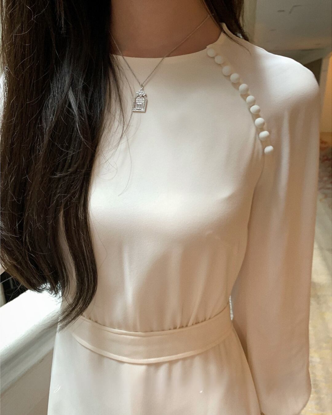 #ウエストリボン #アイボリーワンピース #クラシカルコーデ #フェミニンスタイル #大人ガーリー