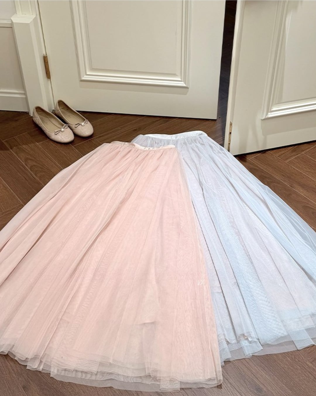 繊細でふんわりと広がるチュール素材を贅沢に使用した、エアリーなロングスカート。軽やかな質感と落ち感が美しく、歩くたびに優雅に揺れるシルエットが魅力です。ウエストはゴム仕様で、ストレスフリーな穿き心地も嬉しいポイント。ブラウスやニットと合わせて、デイリーからお呼ばれコーデまで幅広く活躍してくれる1着です。