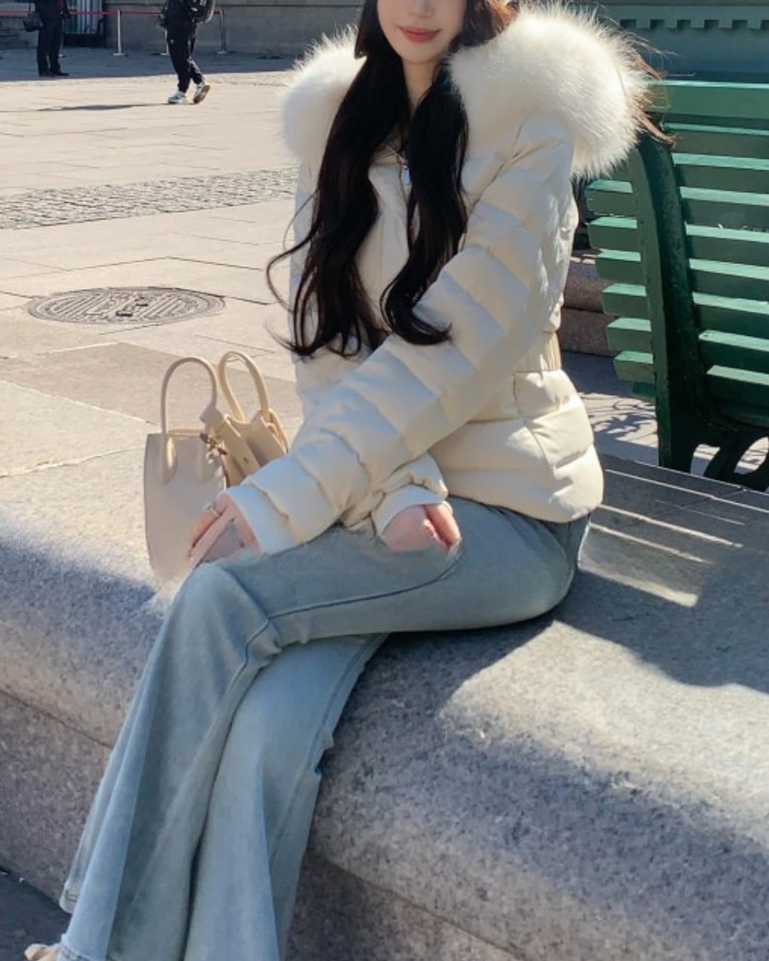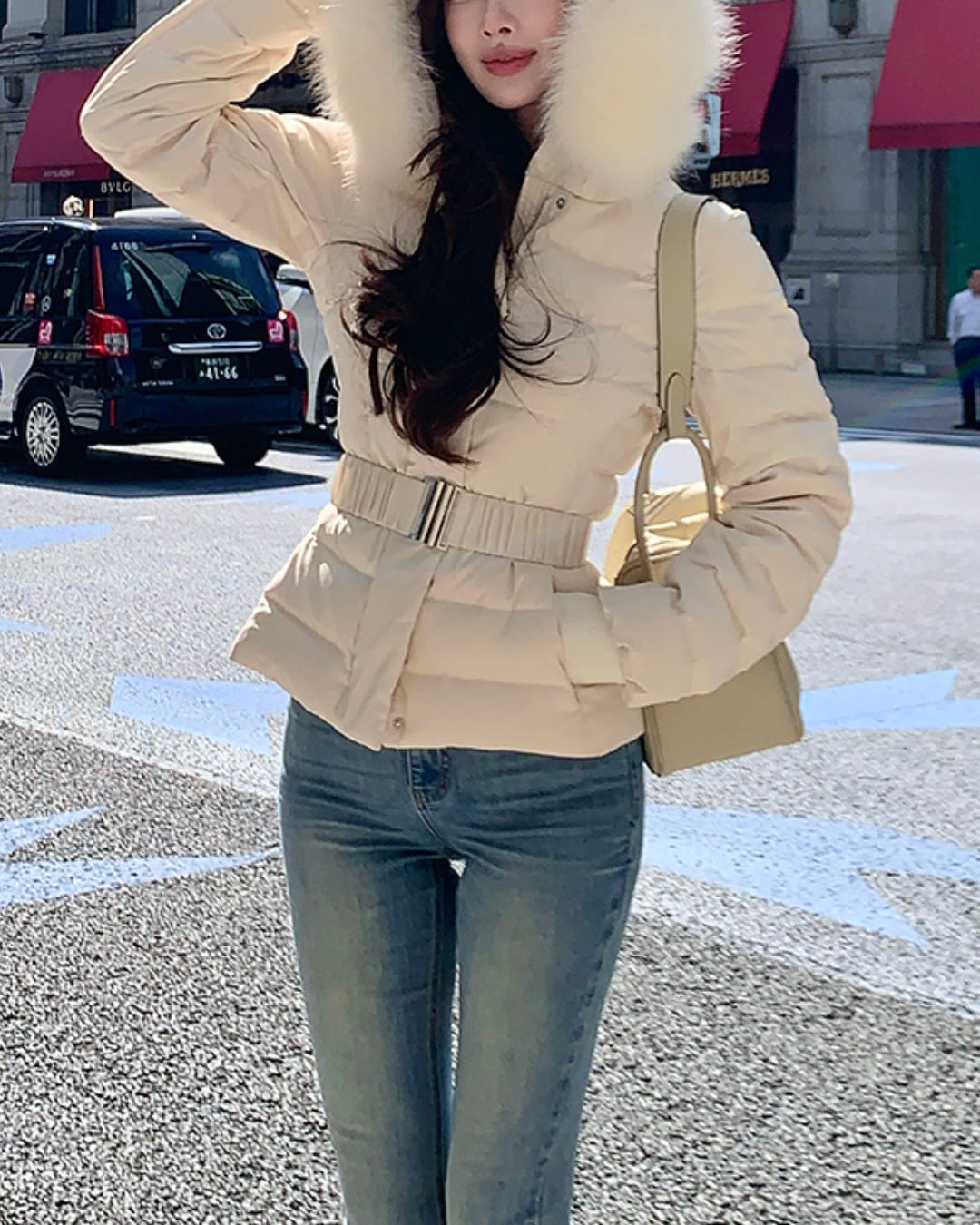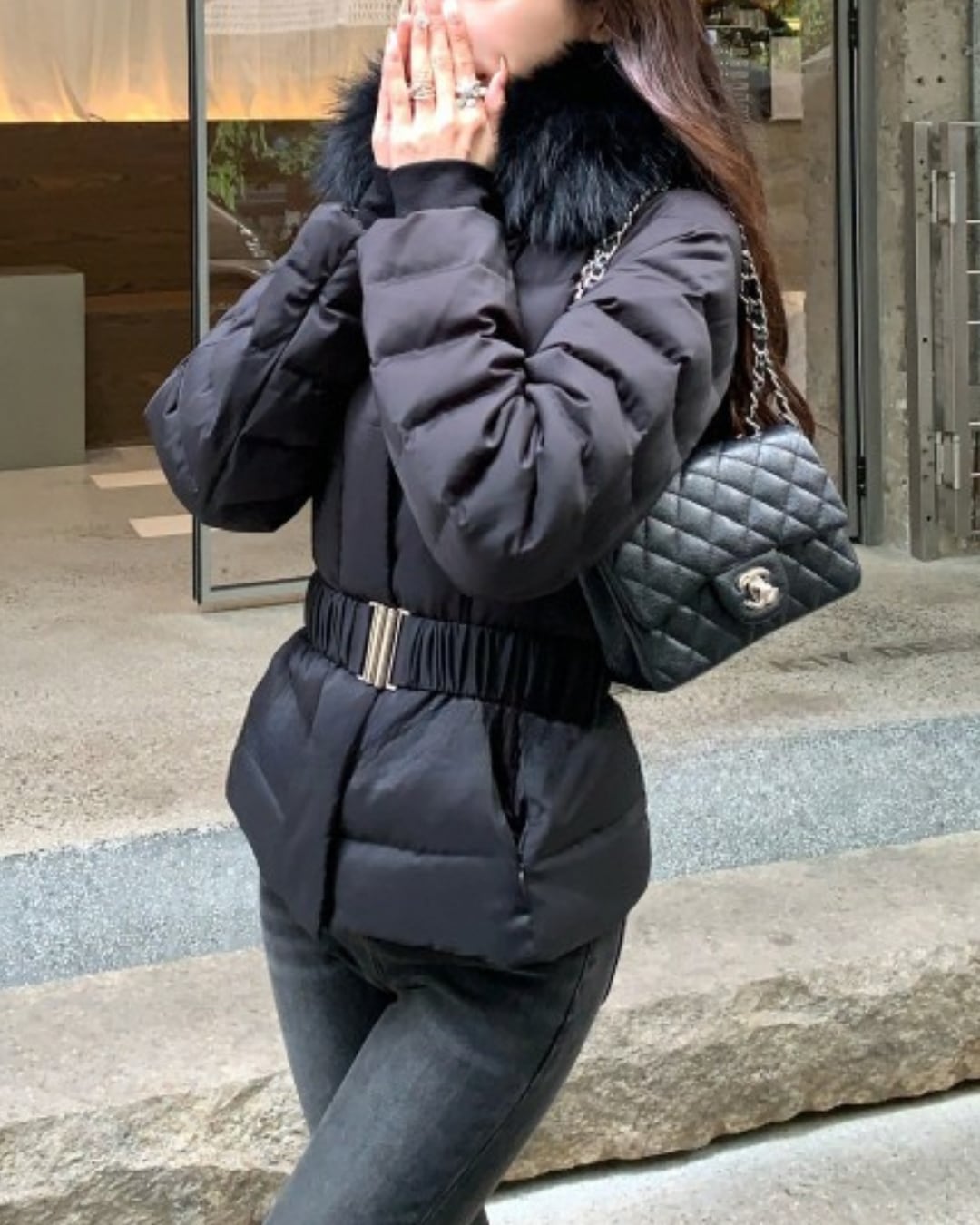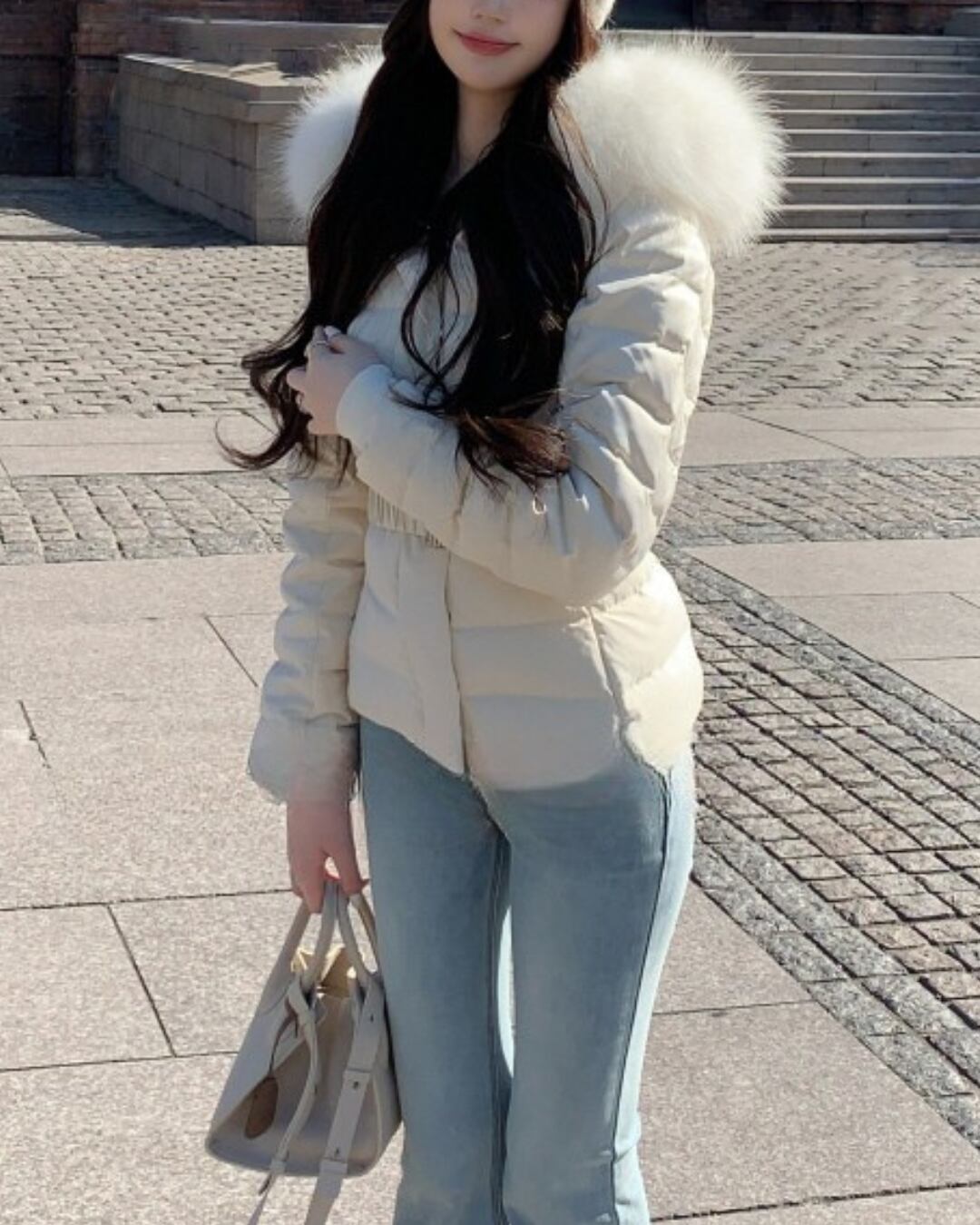 #フェイクダウン #ウエストマーク #ファーフード #防寒アウター #スタイルアップ #大人ガーリー