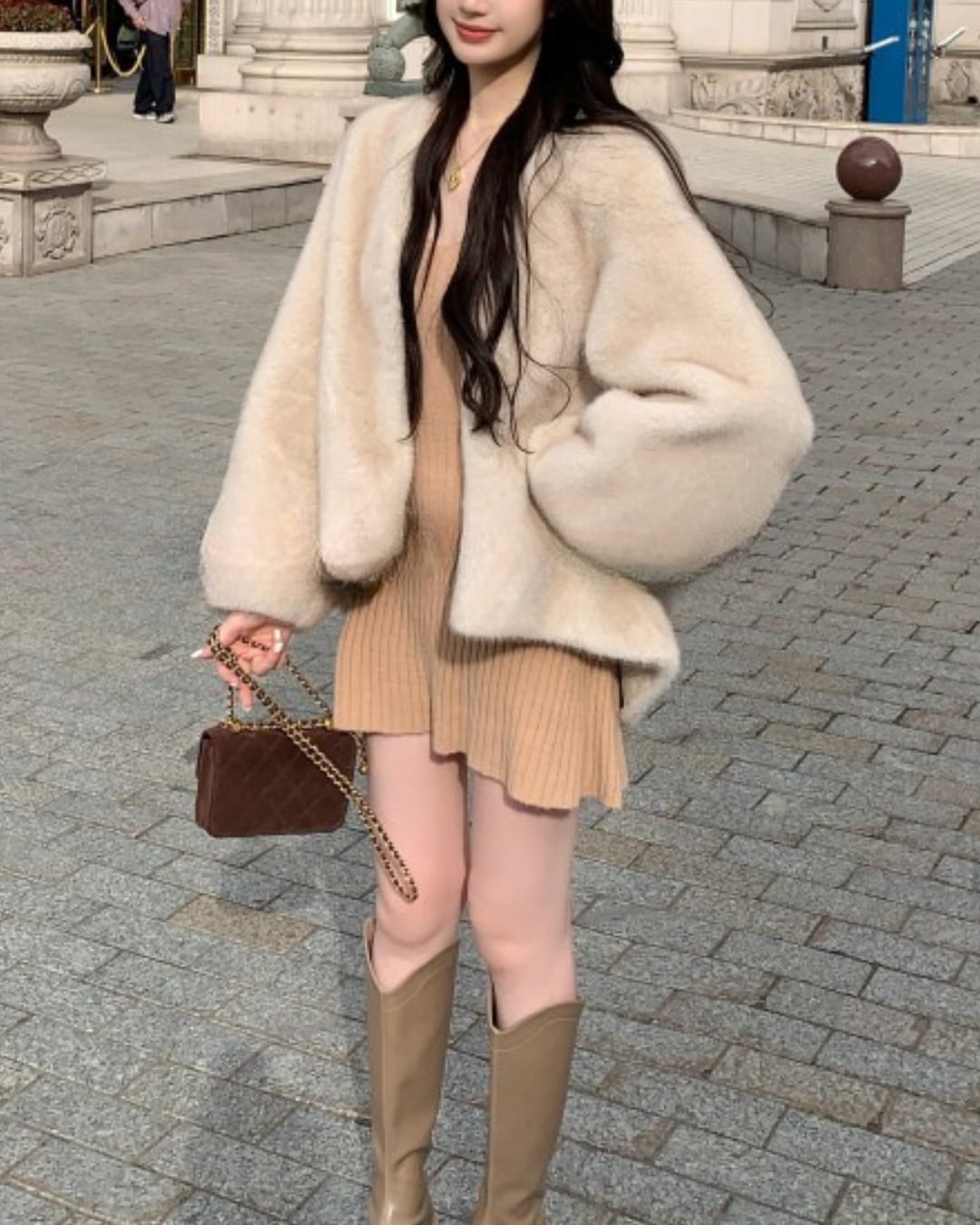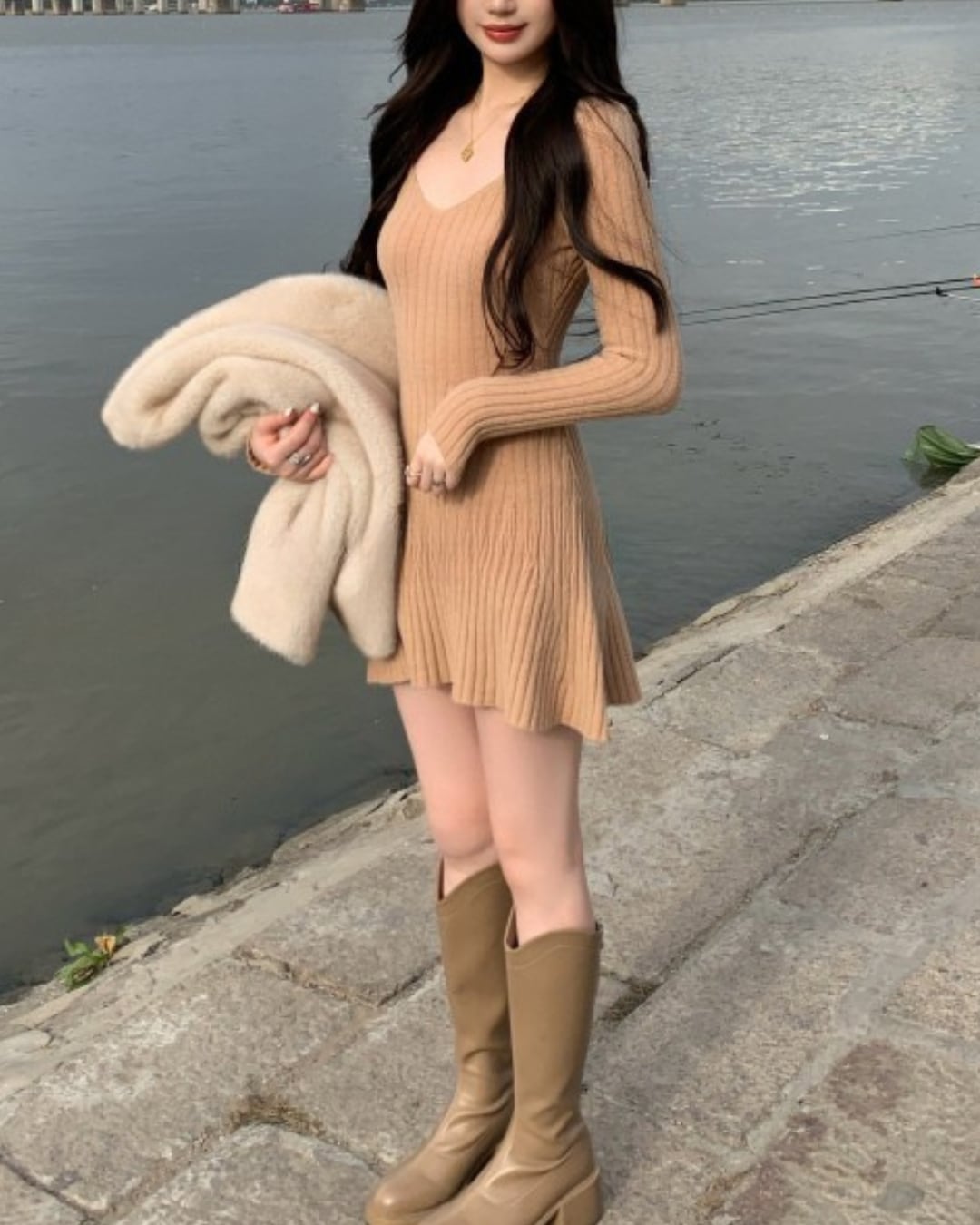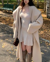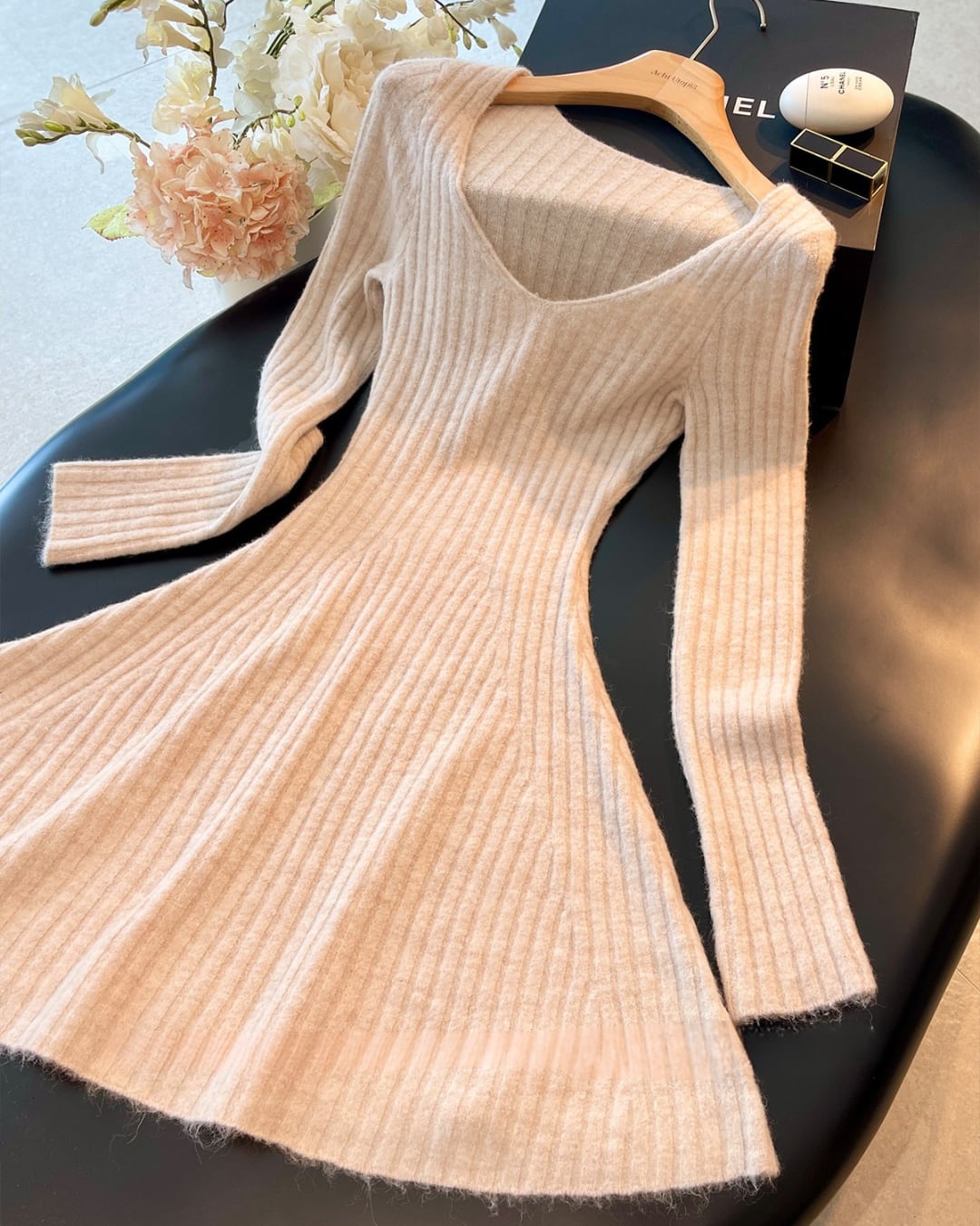 #リブニットワンピース #フィットアンドフレア #ミニワンピ #ラウンドネック #美シルエット #冬コーデ #大人ガーリー
