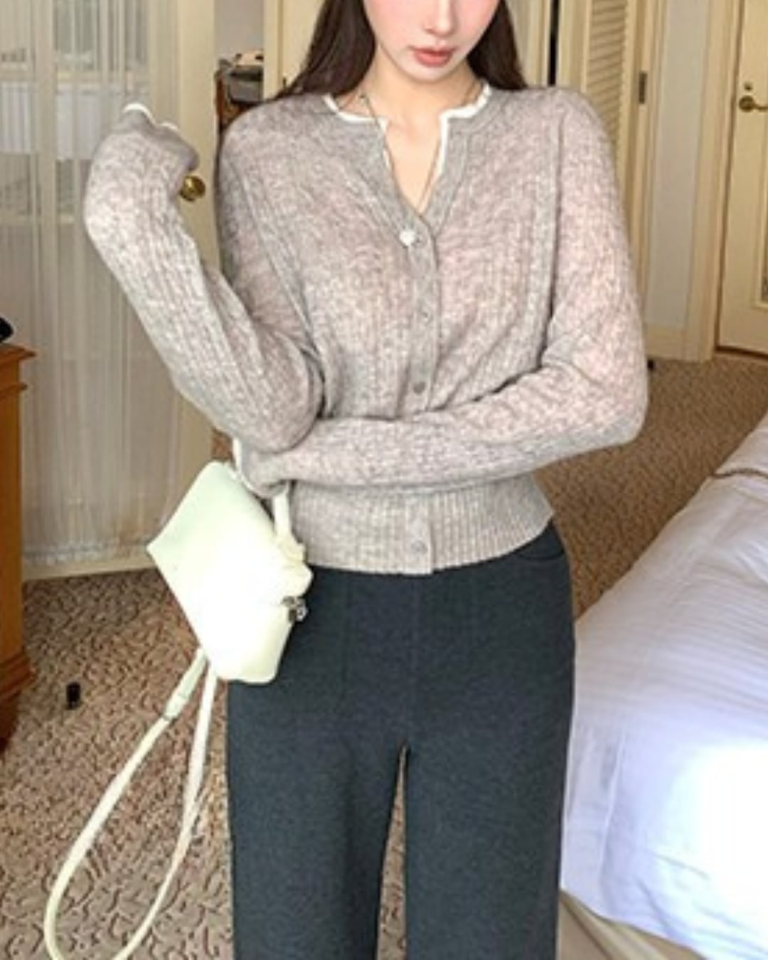 #リブカーディガン #ウール混ニット #大人ガーリー #秋冬トップス #カシミヤタッチ #デイリーコーデ #上品シンプル