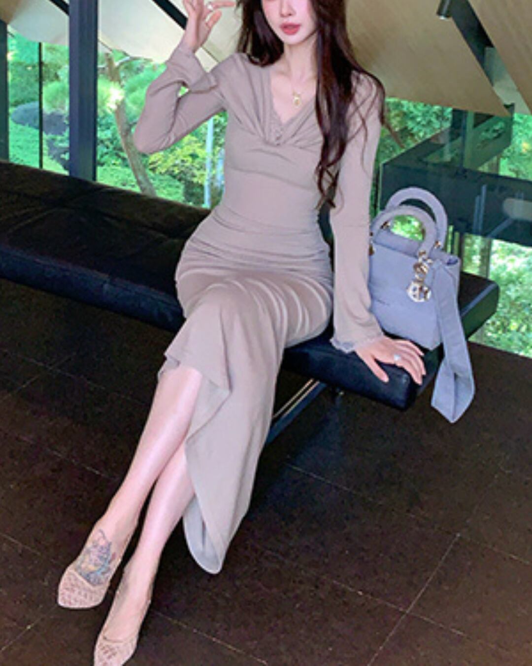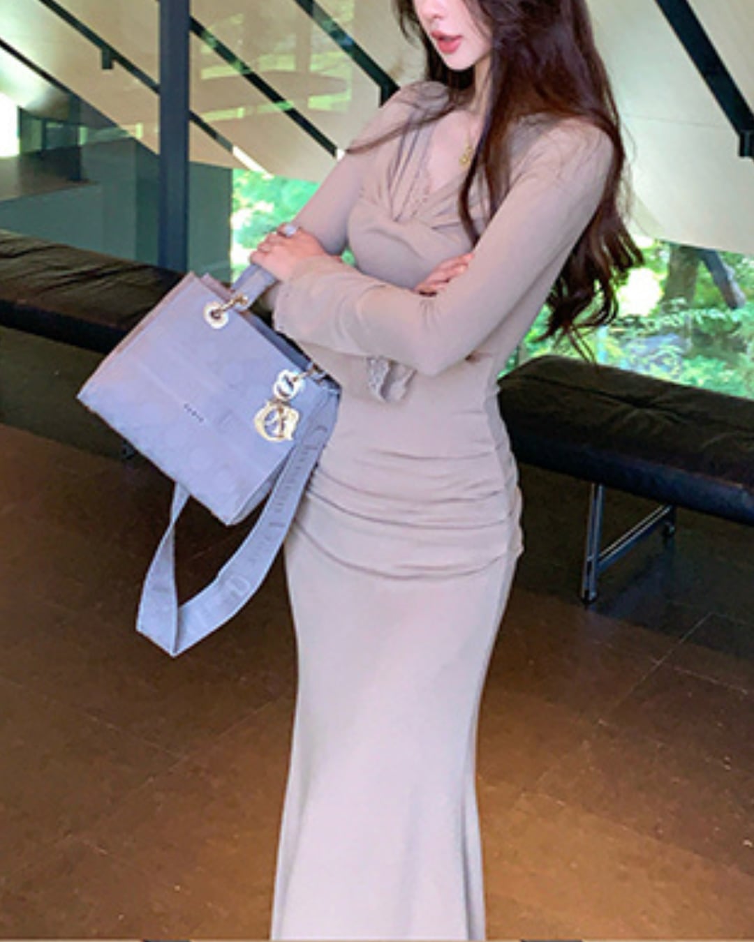 #ドレープネック#マーメイドワンピース#美シルエット#ロング丈あり#秋冬コーデ#上品フェミニン#大人ガーリー