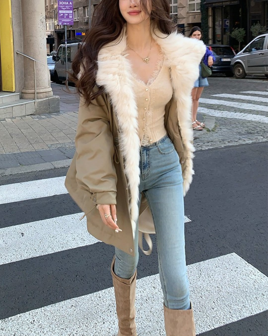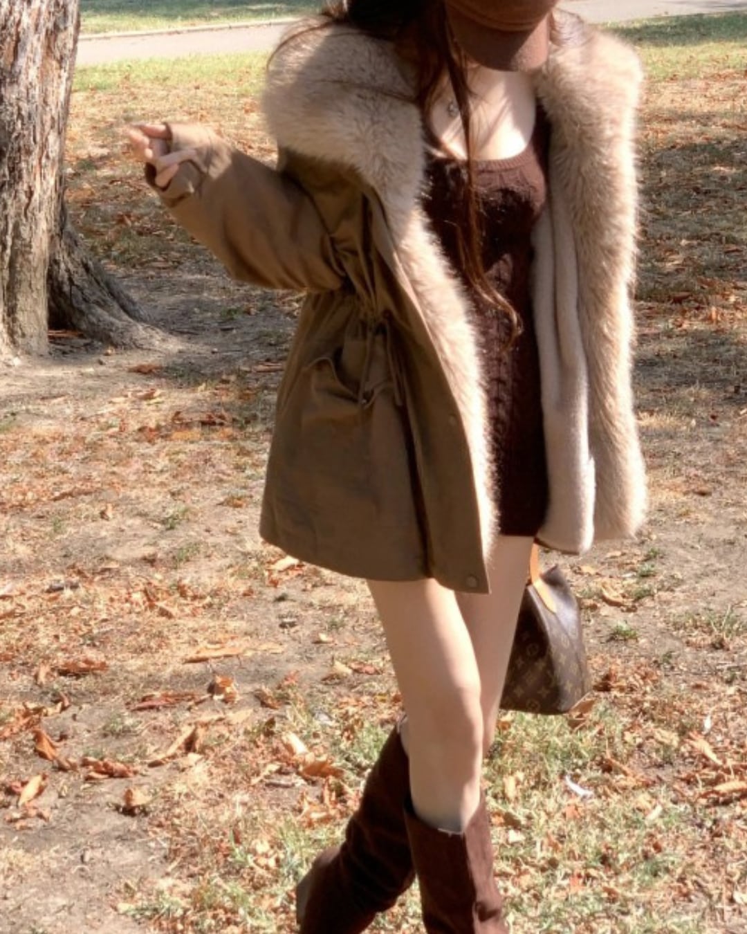 #オーバーサイズアウター#2WAYコート#取り外しファー#リアルファー風#ミンク風ライナー#防寒アウター#真冬コーデ#海外ガーリー