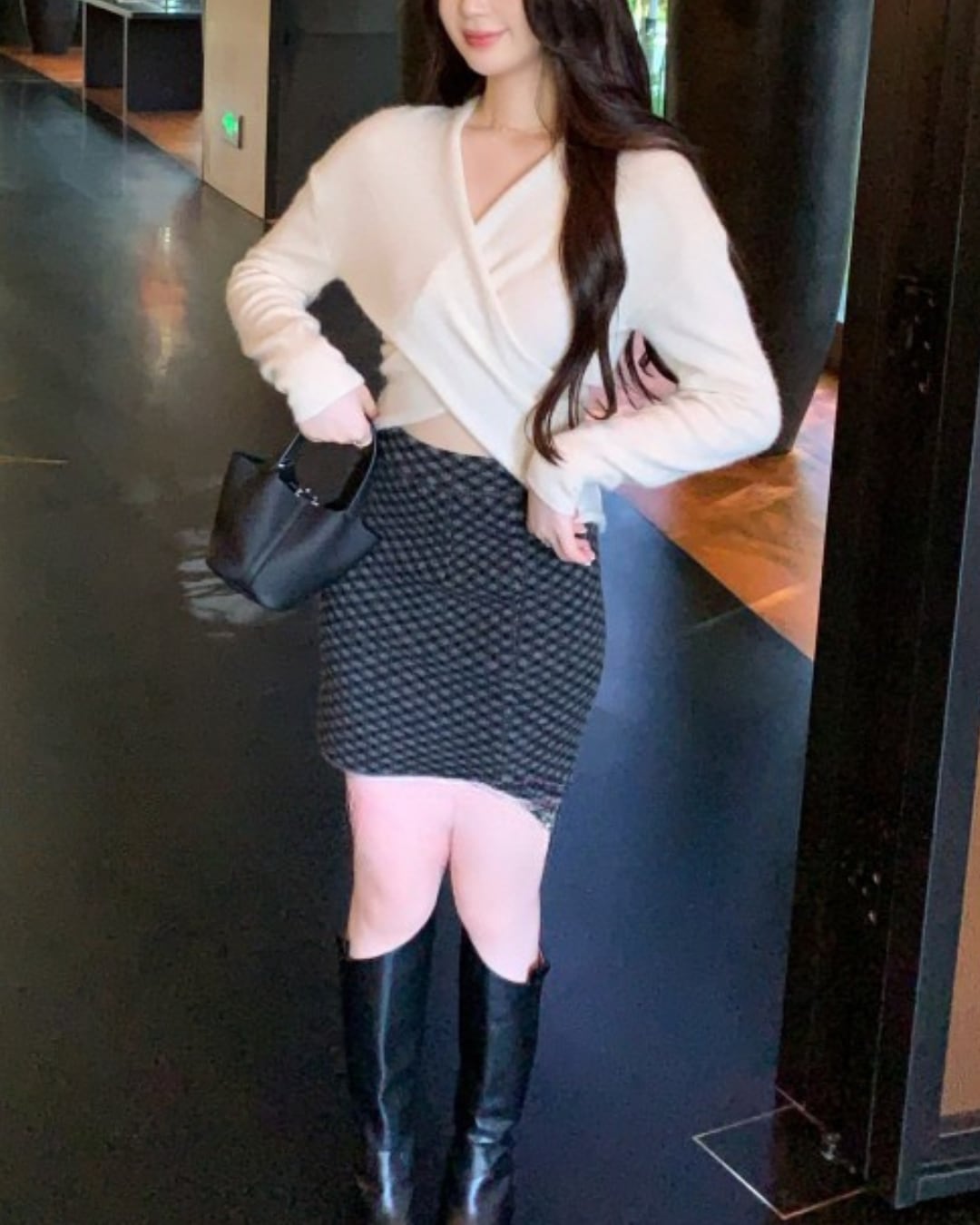 #クロスニット #ふわもこトップス #カシュクール #大人ガーリー #秋冬コーデ #抜け感スタイル