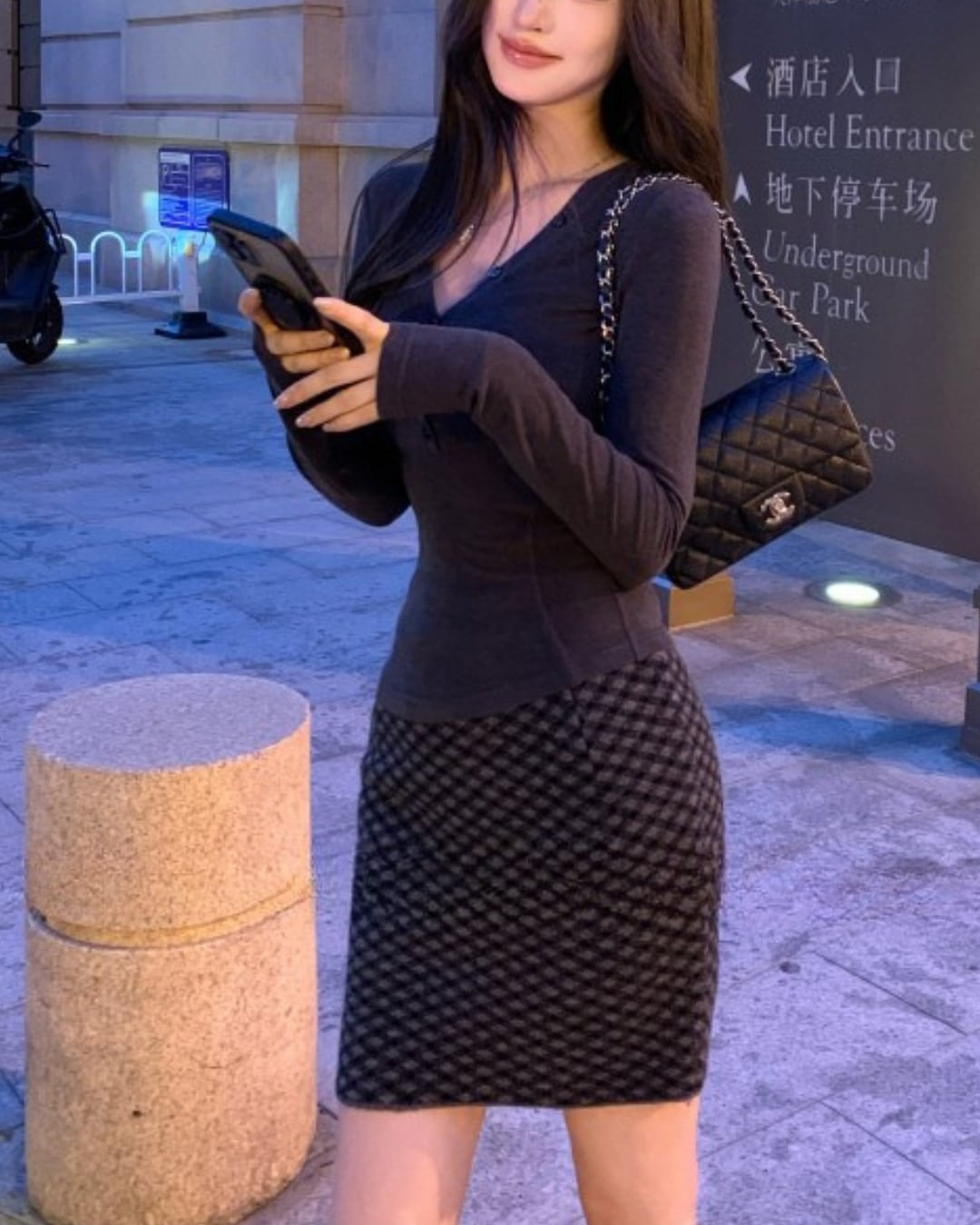 #大人ガーリー #千鳥格子 #ハイウエストスカート #タイトスカート #美シルエット #秋冬スカート #クラシカルコーデ #モノトーンスタイル