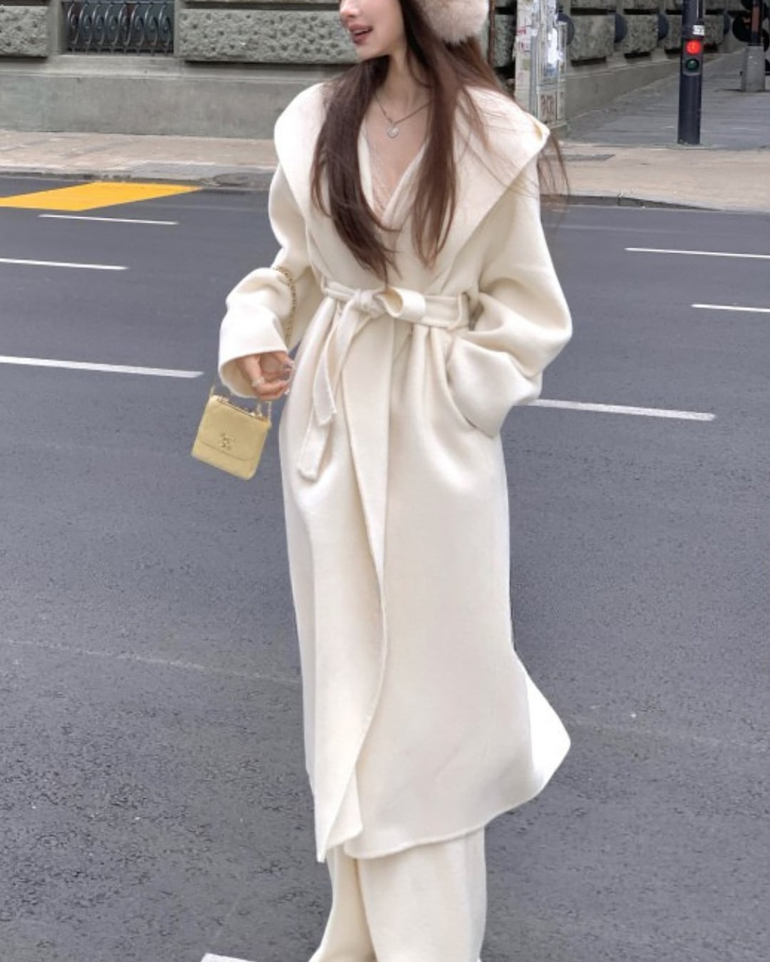 上質な100%ウールを贅沢に使用した、大人のための上品ロングコート。ゆったりとしたドロップショルダーと、しっかりと体を包み込むロング丈で、暖かさとこなれ感を両立。共布のベルトでウエストマークすれば、スタイルアップも叶い、エレガントな印象に。ベーシックながらも洗練されたデザインで、パンツにもワンピースにも好相性。カラーは上品なキャメルとクリーミーなホワイトの2色展開。冬の主役アウターにぴったりの一着です。