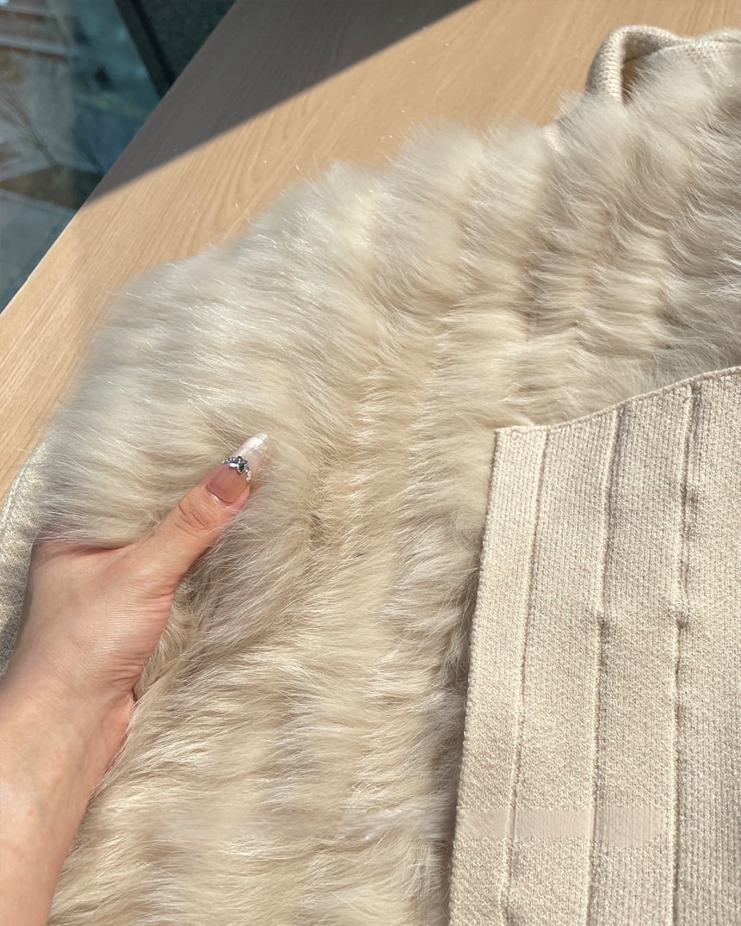 ラグジュアリーなフォックスファーが華やかさを演出する、大人ガーリーなショート丈コート。ふんわりと柔らかな包芯糸ニットで仕立てられた一枚は、軽やかなのにしっかり暖かく、秋冬のお出かけスタイルにぴったり。ゆったりした肩まわりとドロップショルダーのシルエットが今っぽく、スタイリングに抜け感をプラスします。ショートパンツやミニワンピとの相性も抜群で、甘すぎず洗練された印象に仕上がるおすすめのアウターです。