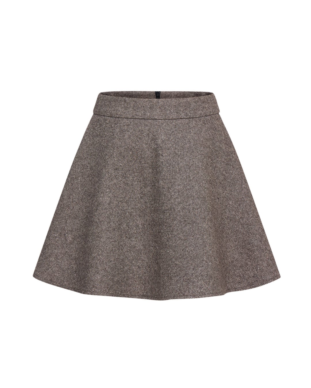 クラシカルなウール混素材で仕立てた、上品で温もりのあるフレアスカート。ふんわり広がるAラインシルエットが美脚効果を引き立て、タイツやロングブーツとの相性も抜群。落ち着いたグレートーンがコーディネートに大人っぽさをプラスしてくれます。オンオフ問わず使える、秋冬の定番アイテムです。