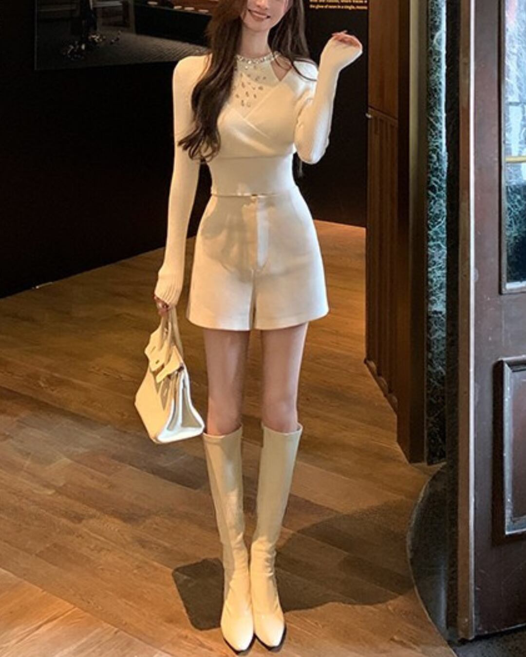 #カットアウトトップス #ビジュー付き #デコルテ魅せ #大人ガーリー #フェミニントップス #スタイルアップコーデ