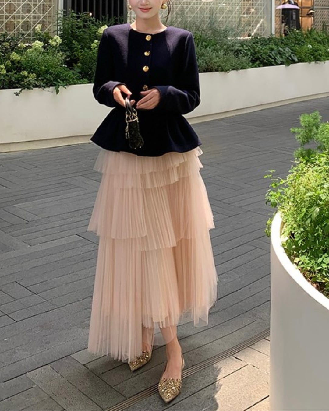 繊細なチュールを幾重にも重ねた、ボリューム感と柔らかさを両立したレイヤードスカート。手作業で仕立てられた多数のカットチュールを丁寧に重ねて仕上げた贅沢なデザインです。軽やかで動きのあるシルエットが魅力で、ジャケットやニットと合わせて大人ガーリーなスタイルに。シーンを選ばずデイリーから特別なお出かけまで幅広く活躍してくれます。