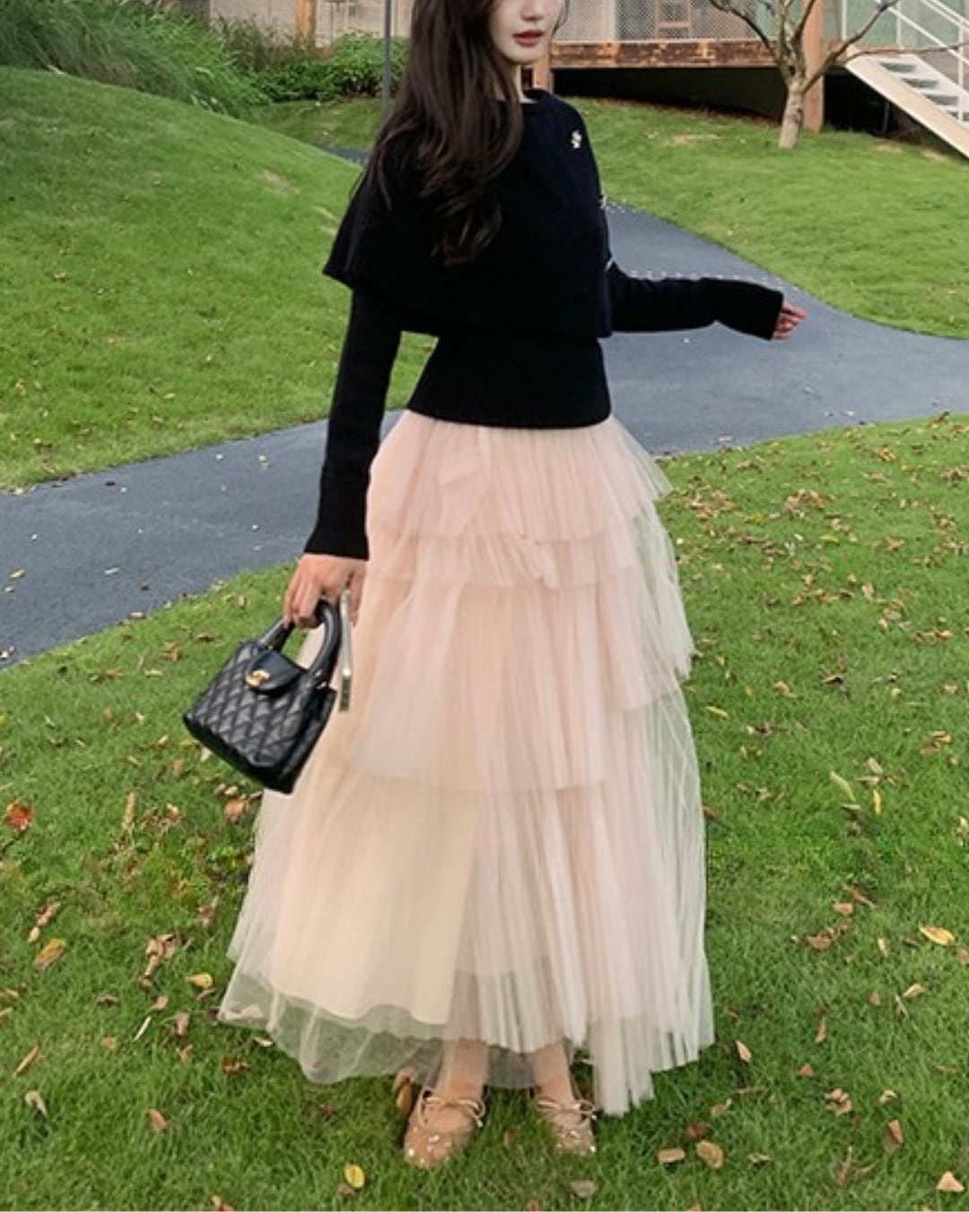 #チュールスカート #レイヤードコーデ #ふんわりシルエット #大人ガーリー #フェミニンコーデ #デートコーデ