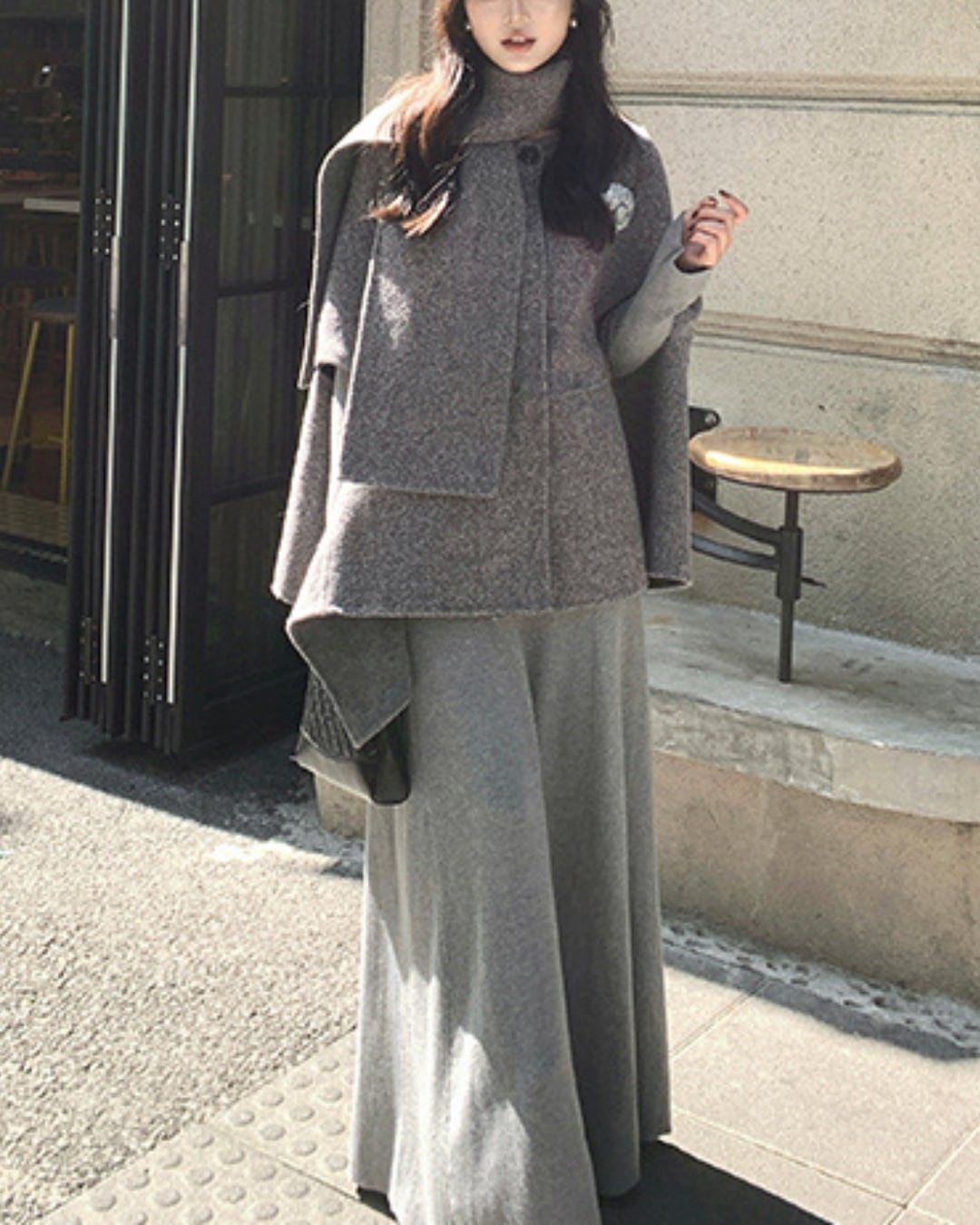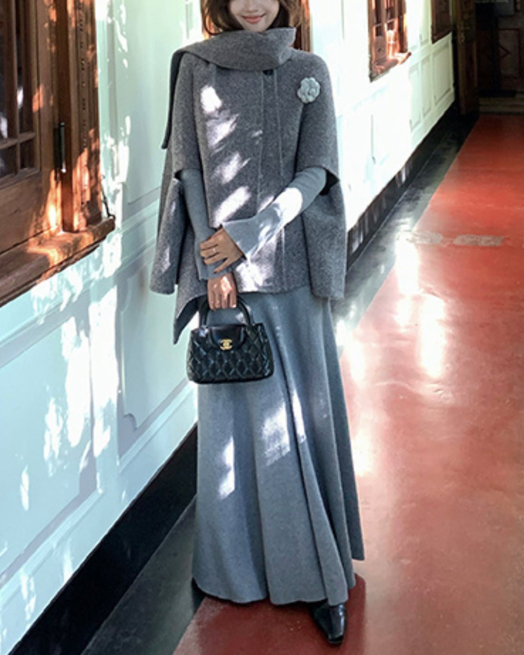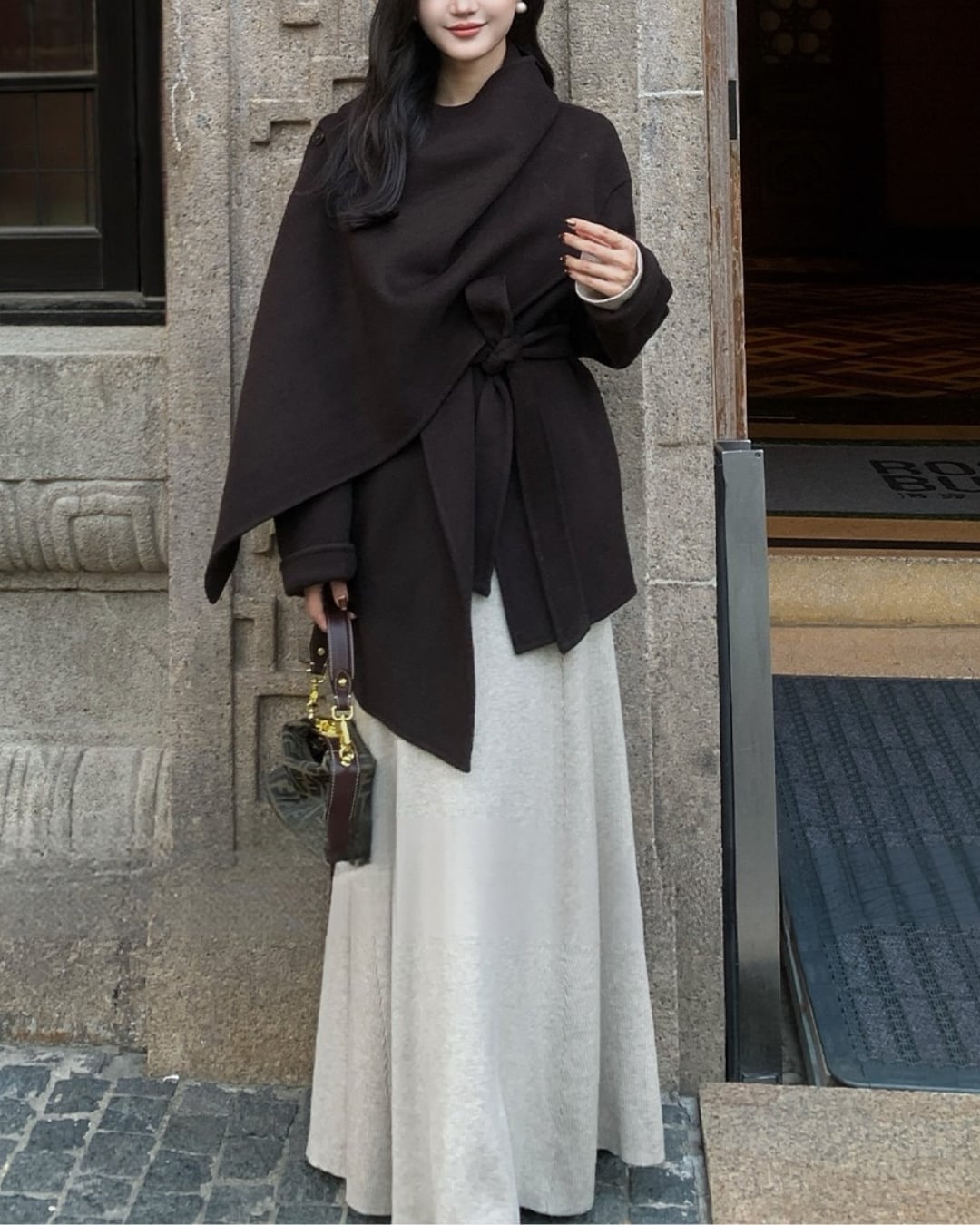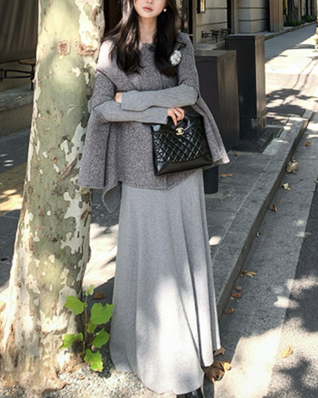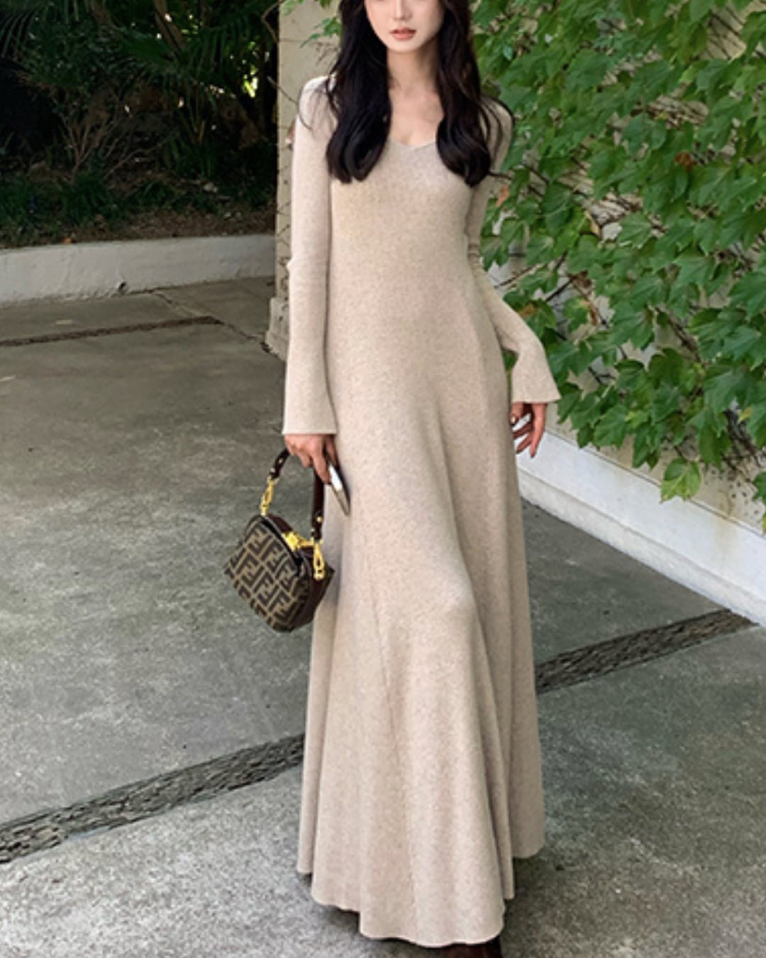 #フィットアンドフレア #ニットワンピース #大人フェミニン #デコルテ見せ #美シルエット #秋冬コーデ