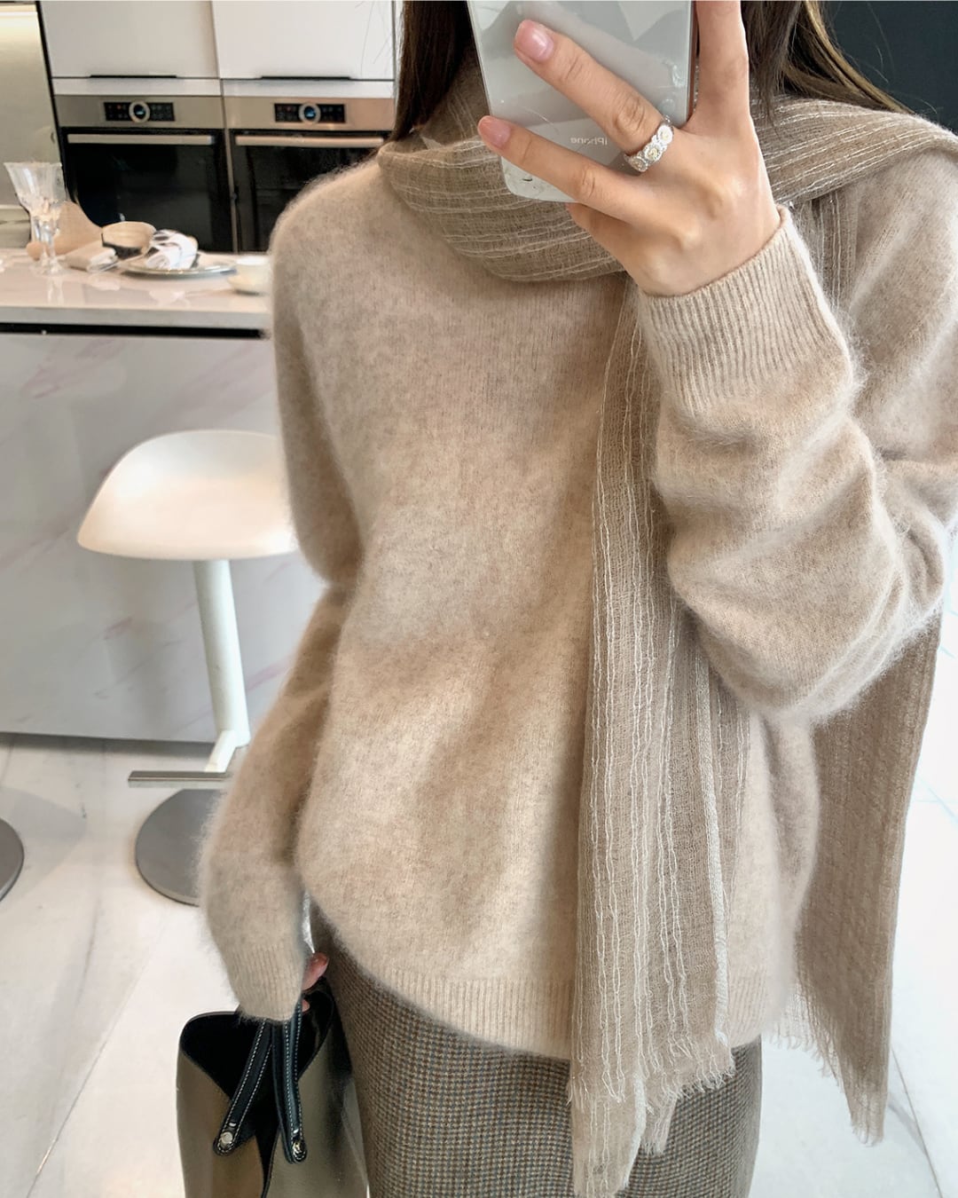 #ふわもこニット #アンゴラ風 #くすみカラー #冬の主役トップス #ナチュラルガーリー #ゆるコーデ #ミニマルファッション