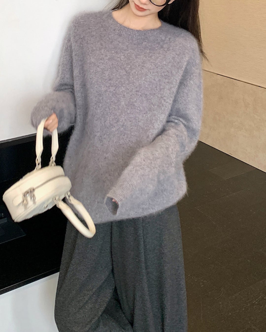 ふんわりとした毛足が大人可愛い、アンゴラ風のニットプルオーバー。ゆるめのシルエットが自然な抜け感を演出し、パンツにもスカートにも好相性。袖口や裾のリブがメリハリをプラスし、シンプルながら上品さを引き立てます。マットな質感と柔らかい肌触りが魅力で、1枚で冬コーデの主役に◎カラバリも豊富なので色違いで揃えたくなるアイテムです。