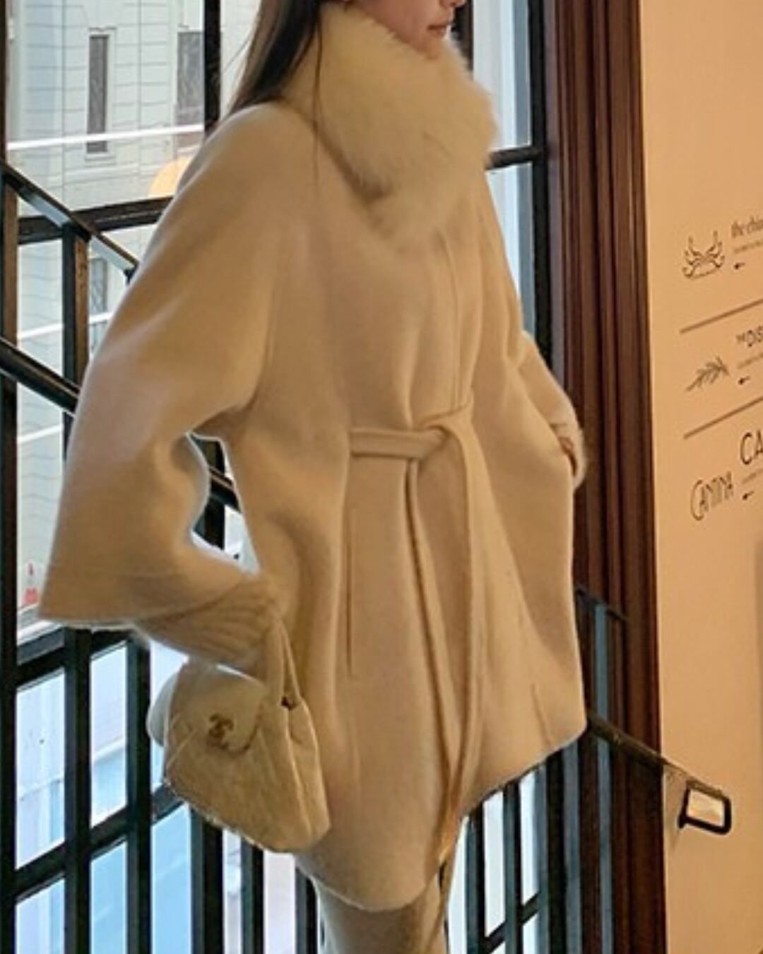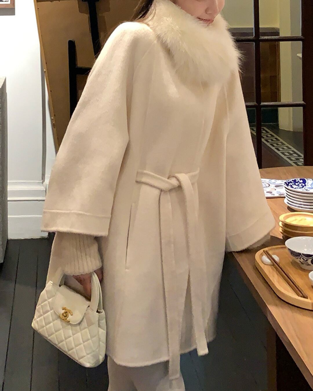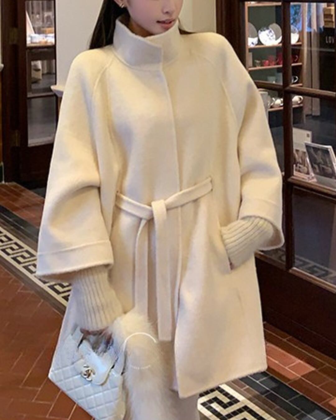#ウールコート #ベルスリーブ #大人ガーリー #ゆったりアウター #比翼仕立て #フェミニンコーデ #冬コーデ