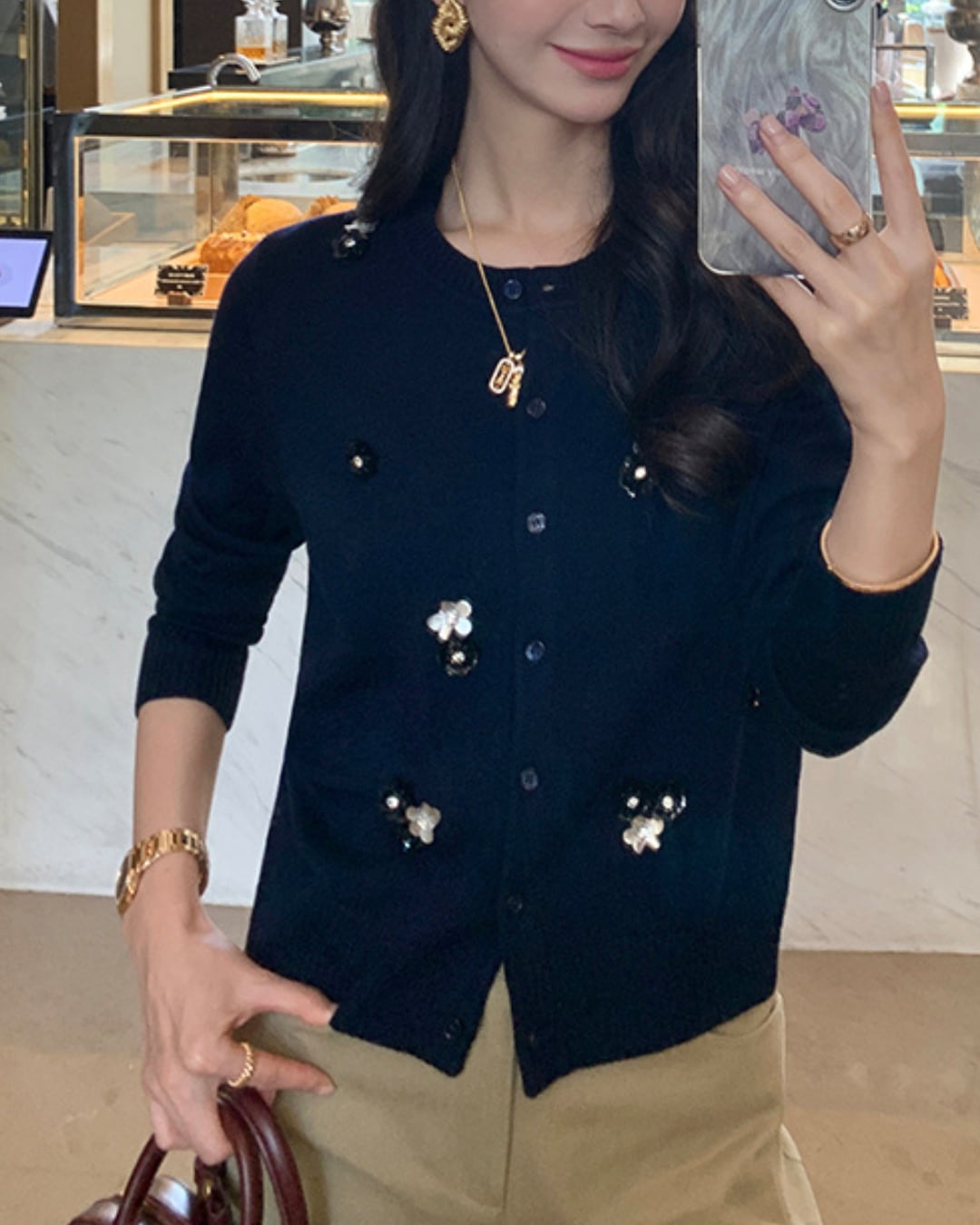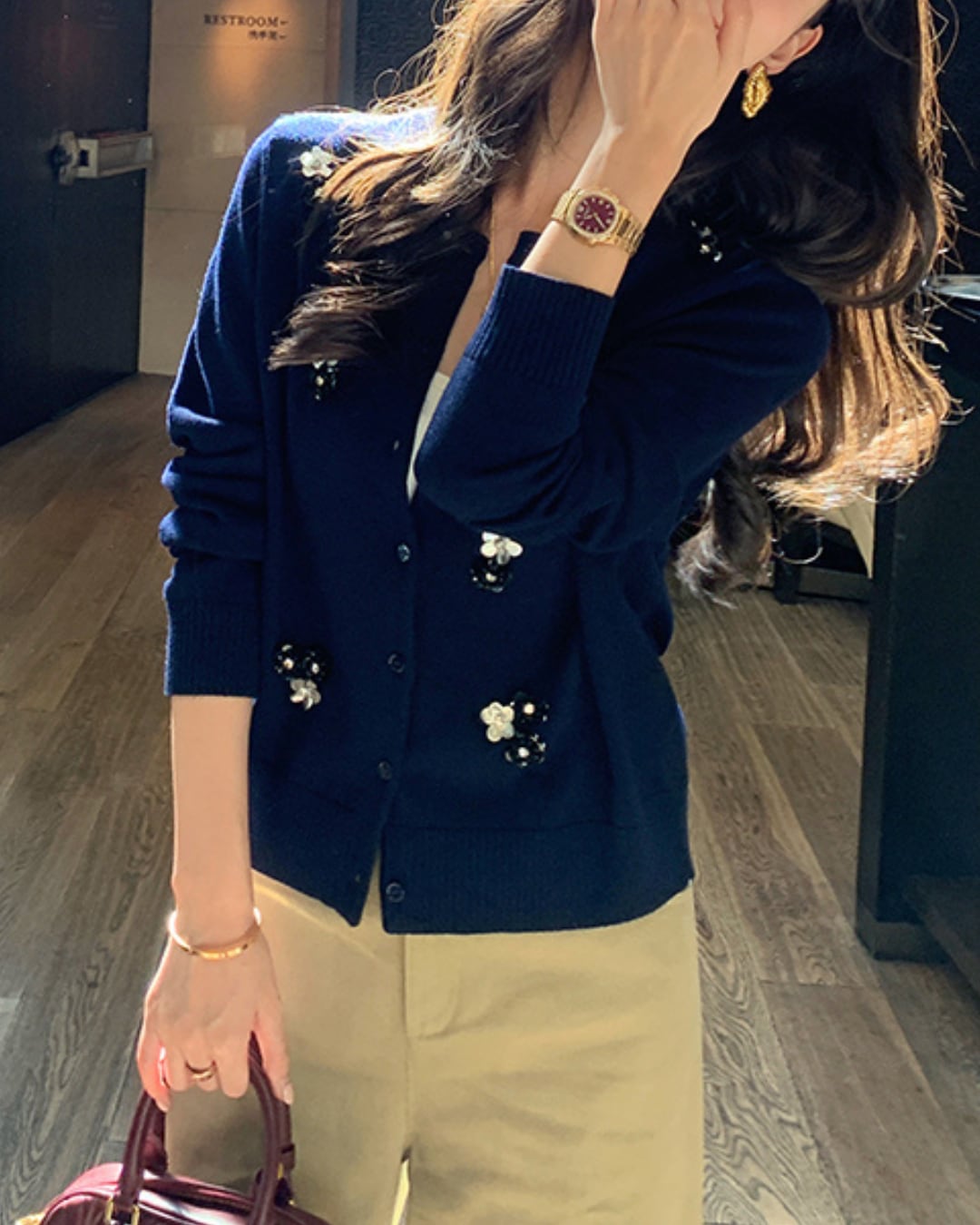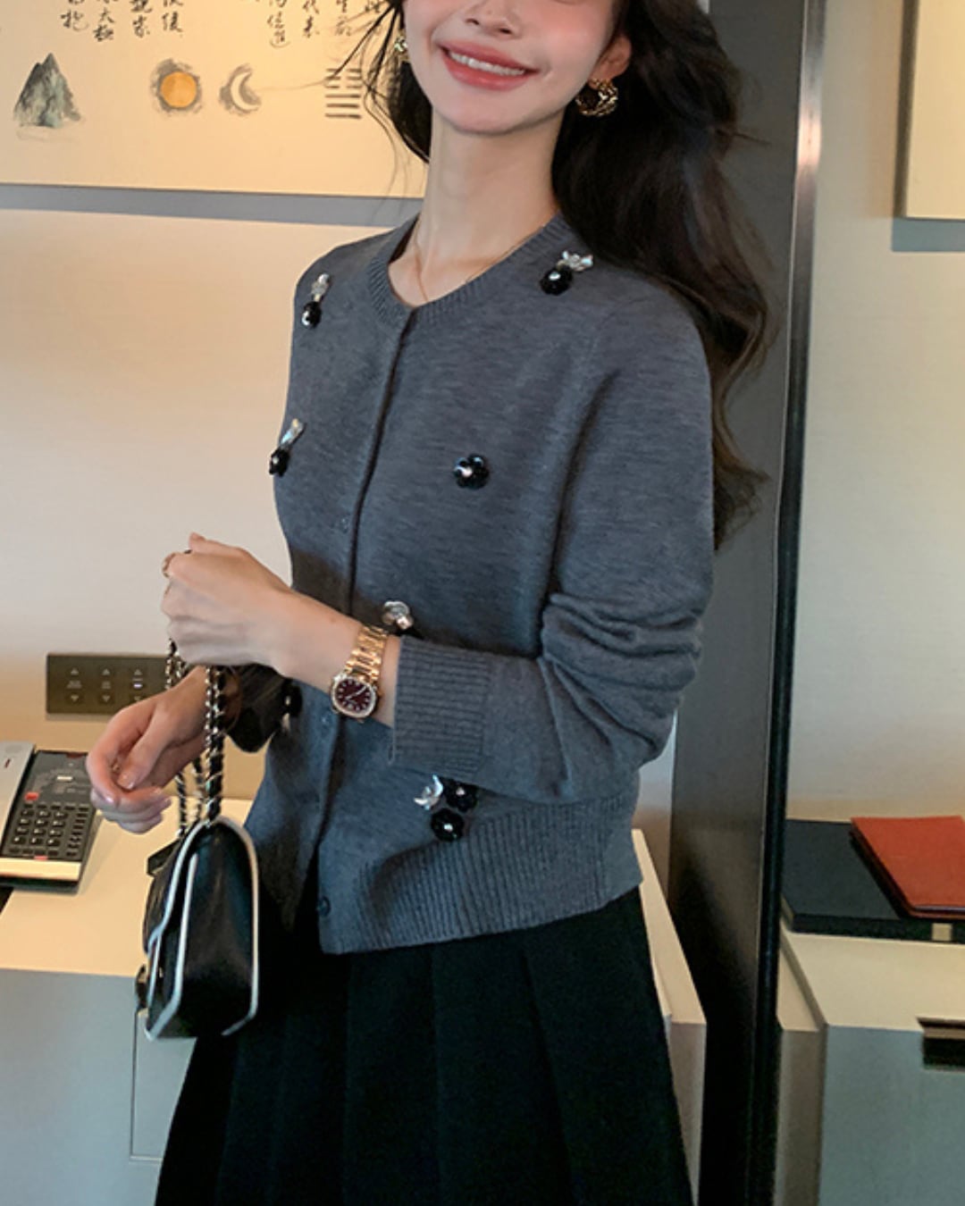 #ビジューカーディガン #大人ガーリー #高見えニット #上品スタイル #ウール混 #通勤コーデ #オケージョン