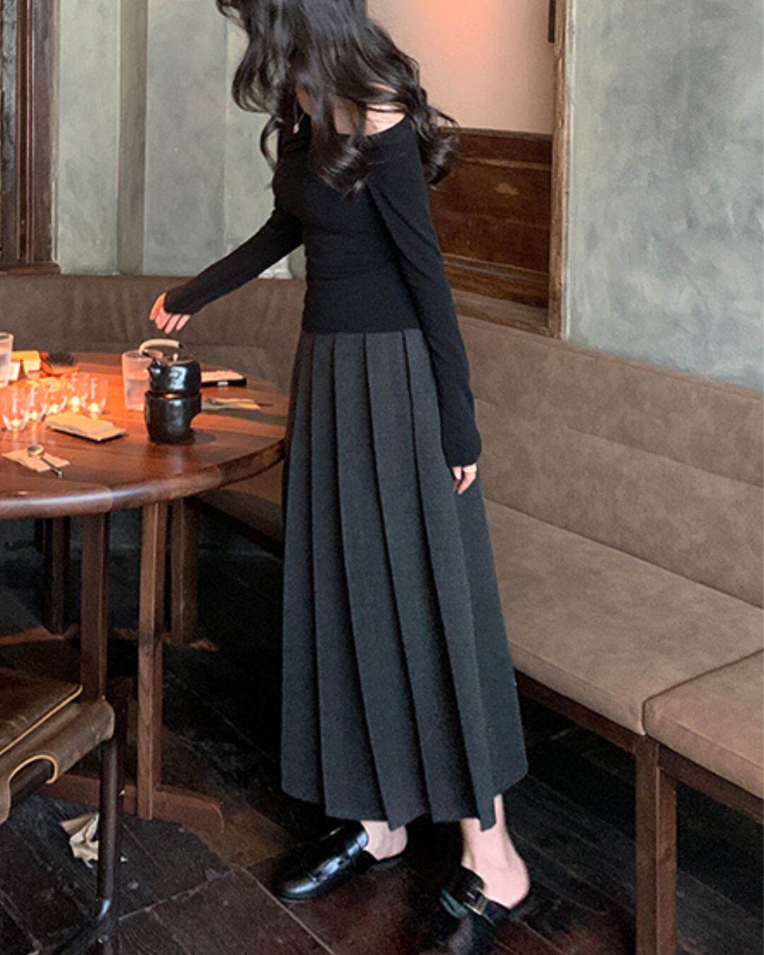 #オフショル #アシンメトリー #美シルエット #大人ガーリー #ニットトップス #フェミニンコーデ #肌見せトップス