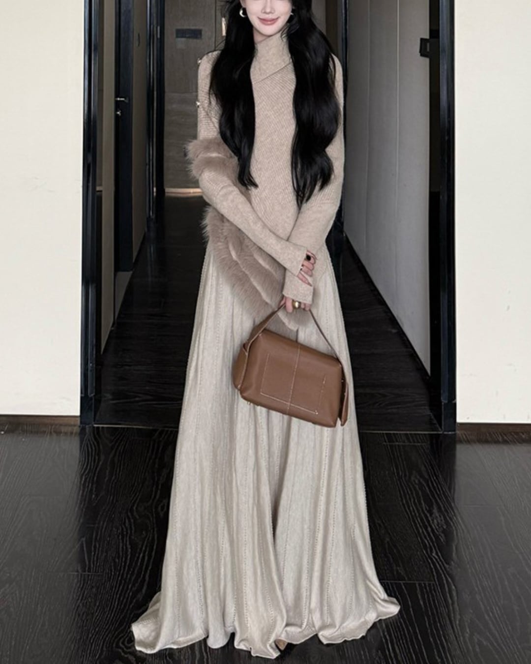 ゴールドボタンがエレガントなアクセントになったショルダーデザインが魅力のニットトップス。柔らかく厚みのある編み地に、裾と袖口にはふわふわのフェイクファーが施されており、季節感たっぷりの一枚です。アシンメトリーに流れるような襟元と、フェミニンなフレアシルエットがスタイリングを上品に格上げ。ベージュ系のカキ色とやさしいアイボリーの2色展開で、大人ガーリーなコーデにぴったりです。