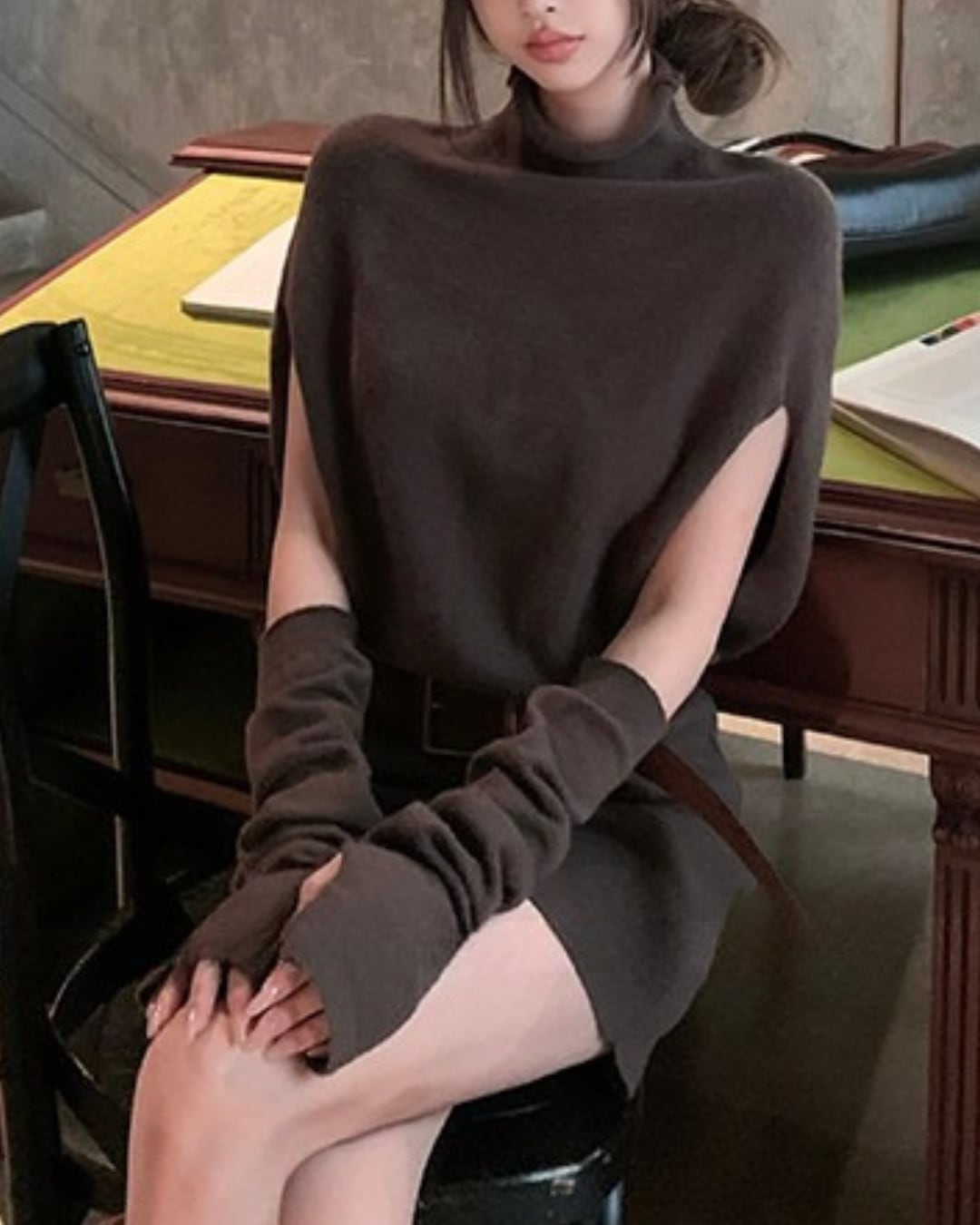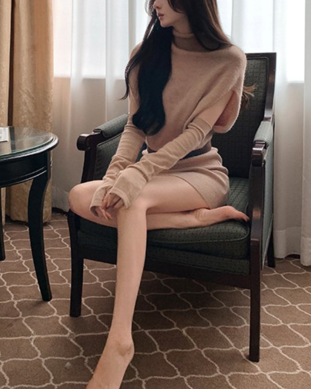 #ニットワンピース #肌見せ #スリットスリーブ #大人ガーリー #フェミニンコーデ #美シルエット #秋冬ワンピース