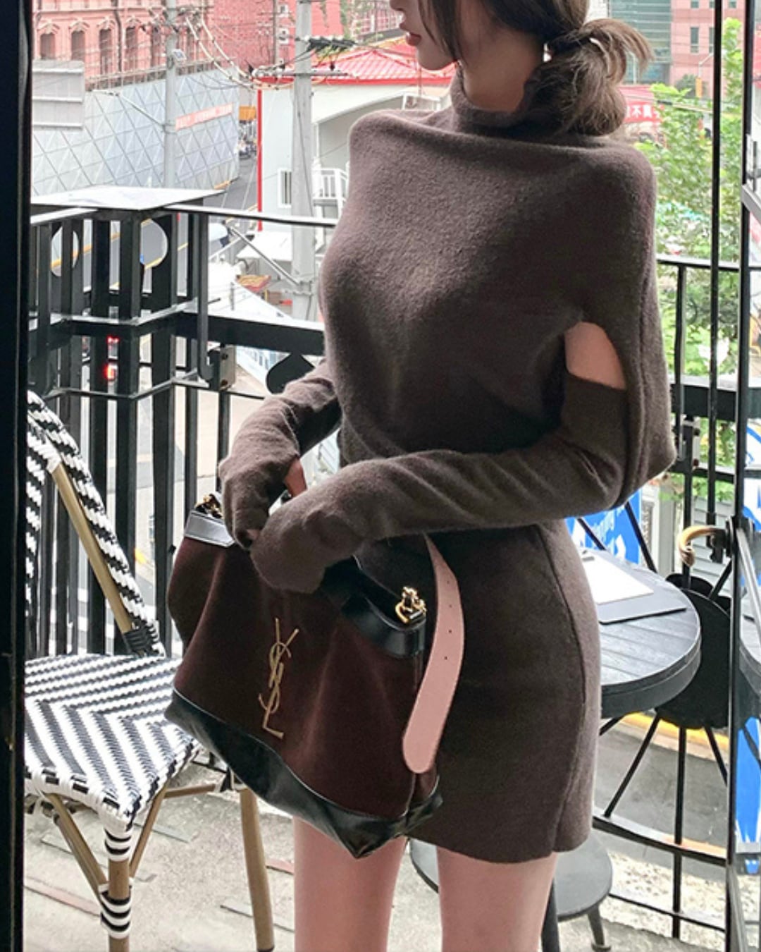 肩のスリットから覗く肌見せが絶妙な抜け感を演出する、大人ガーリースタイルのニットワンピース。アシンメトリーなネックデザインと、しなやかなボディラインにフィットするシルエットが女性らしさを引き立てます。同色のベルトでウエストマークすれば、さらにスタイルアップ効果も。