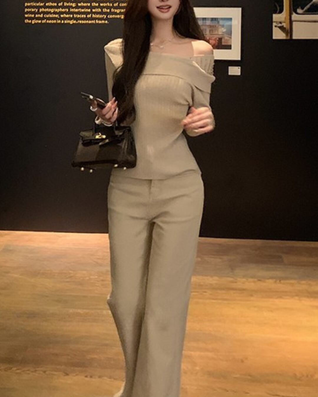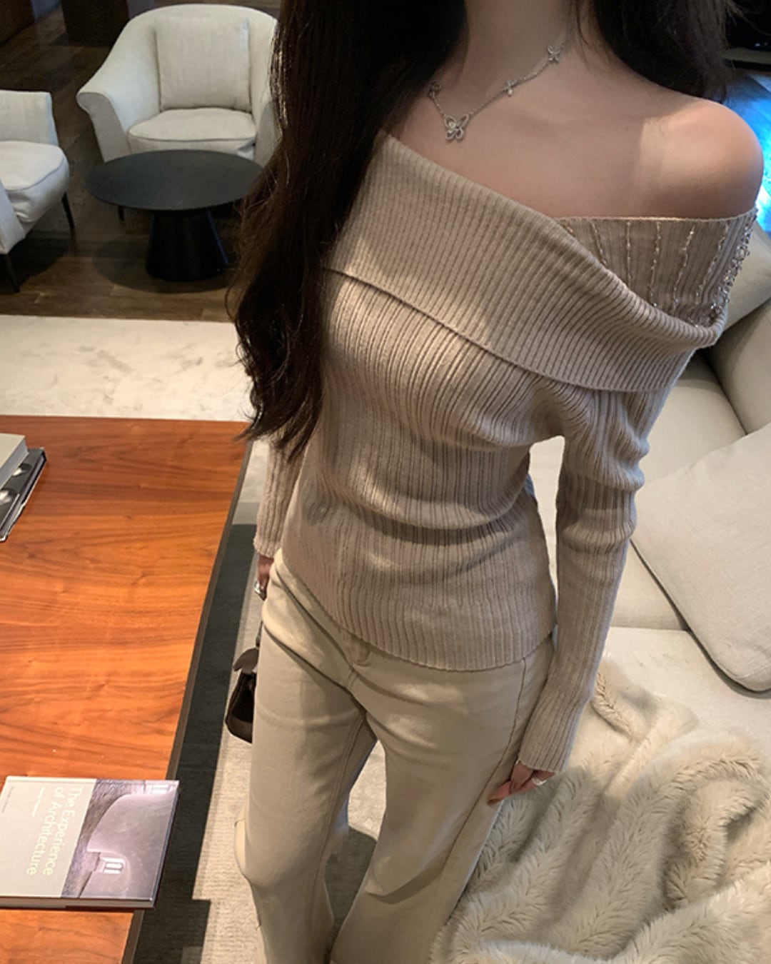 #オフショルニット #リブトップス #ラインストーン付き #フェミニンコーデ #大人ガーリー #秋冬トップス