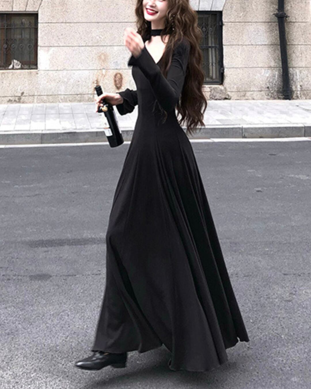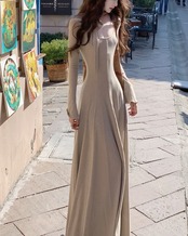 ヴィンテージなムードと現代的なエッセンスをミックスした、スクエアネックデザインのロングフレアワンピース。たっぷり生地を使用したフレアスカートは、歩くたびにふんわり広がる動きのあるシルエットに。柔らかく伸縮性のある高密度リブニット生地は、身体のラインに優しくフィットしながらも美しいドレープ感を保ちます